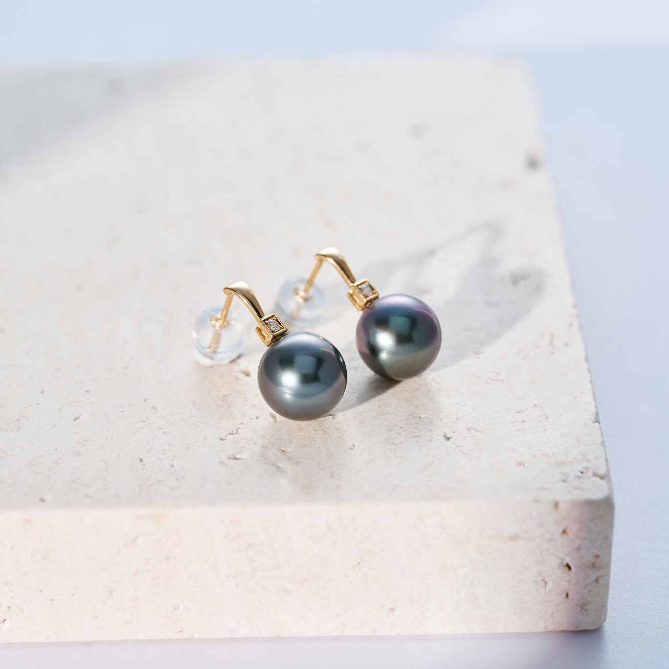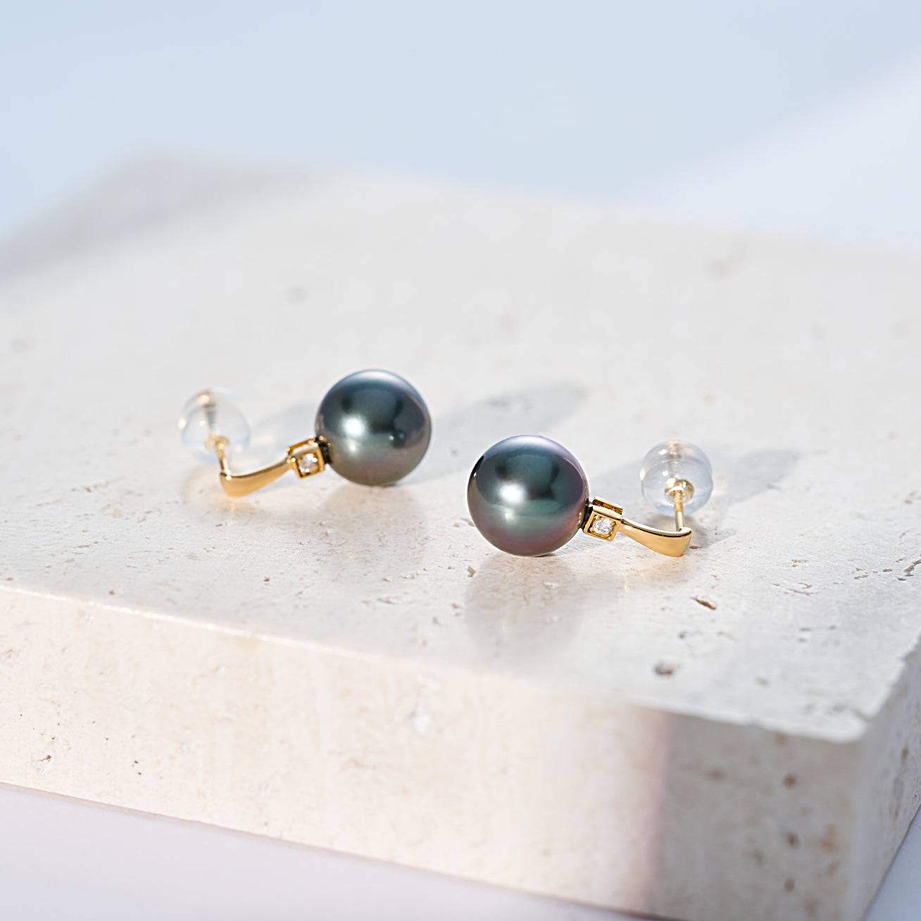 استمتع بتألق أقراط اللؤلؤ التاهيتي pearl earrings. تنضح هذه الجواهر الذهبية عيار 18 مزينة بالألماس بالكاريزما والوقار، مما يمنح مظهراً ساحراً.