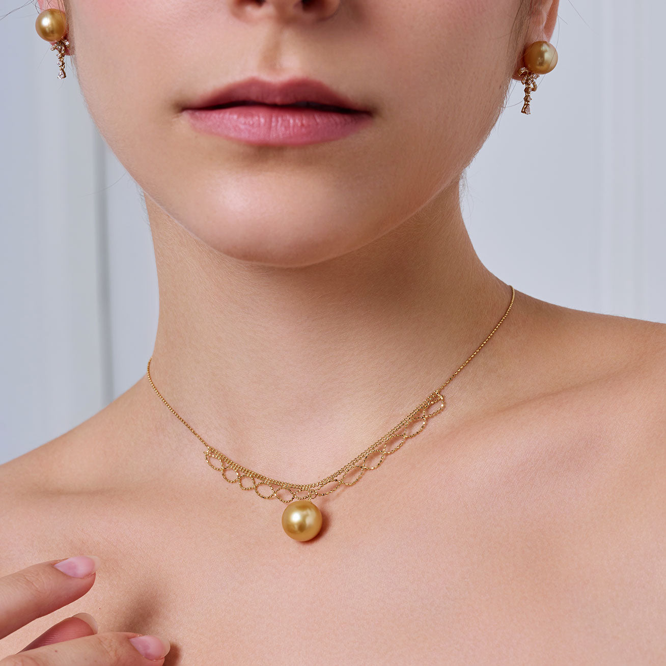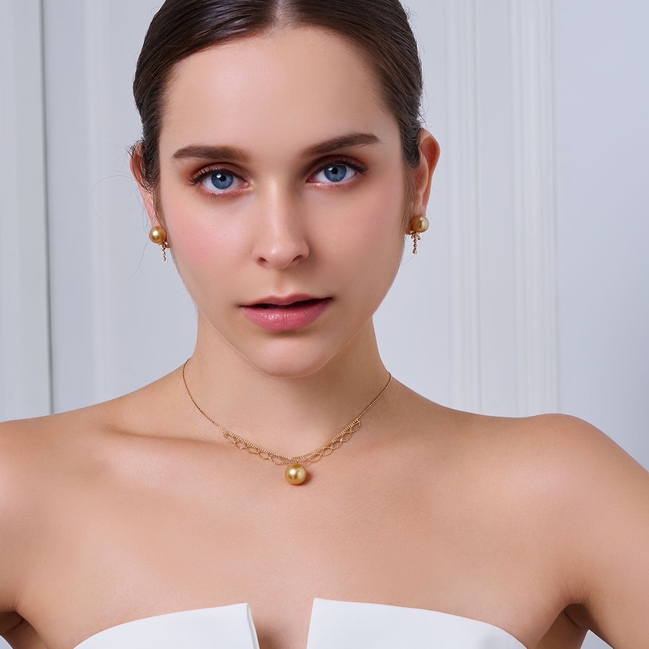 18K Solid Gold South Sea Golden Pearl Necklace KN00366 - PEARLY LUSTRE