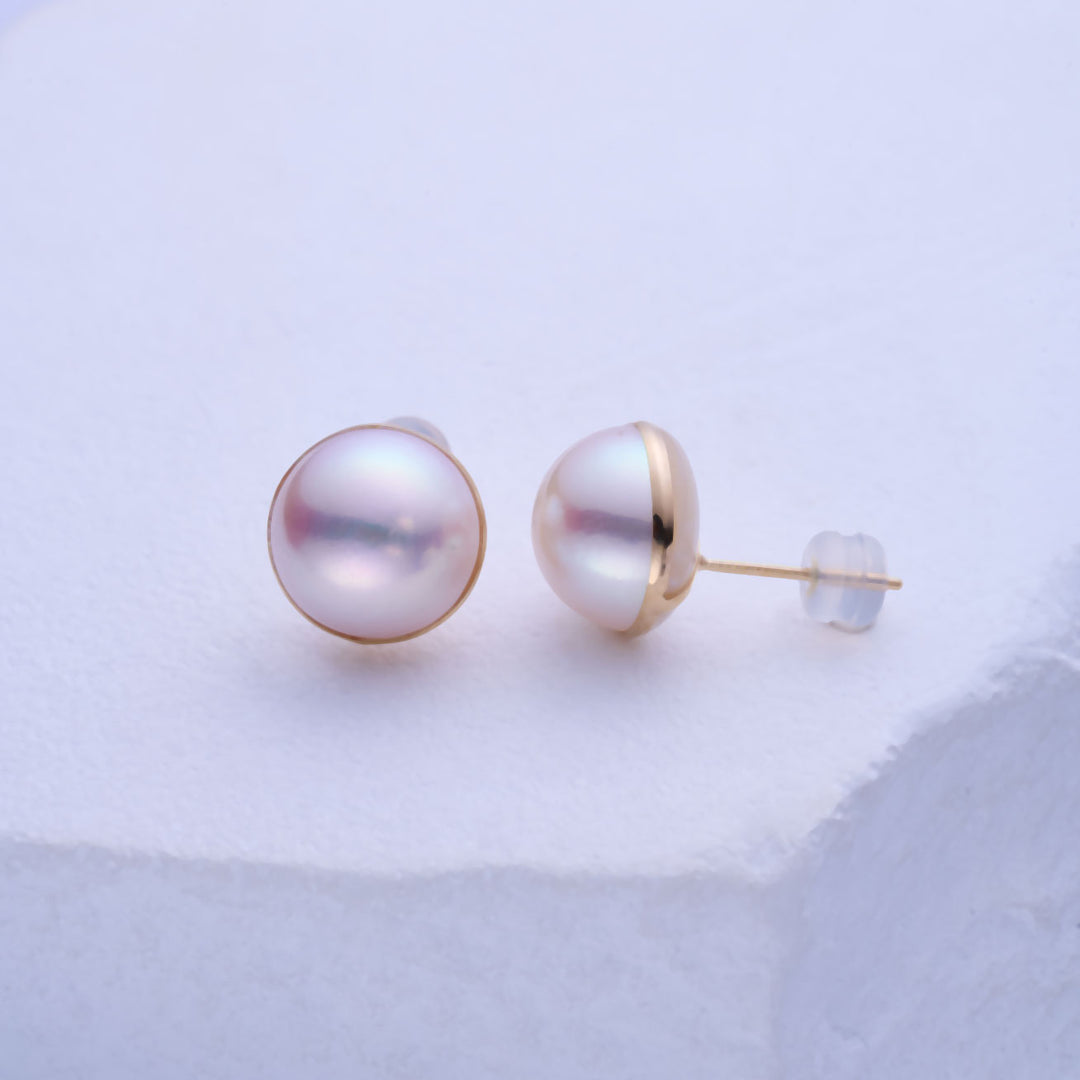 Top Grade 18K Gold Mabe Pearl Earrings KE00230 - PEARLY LUSTRE