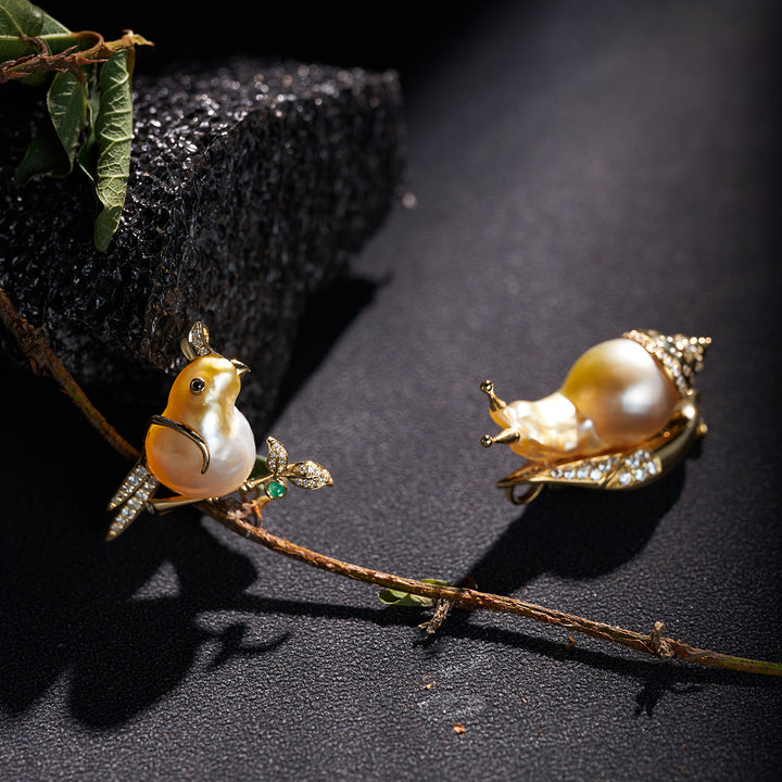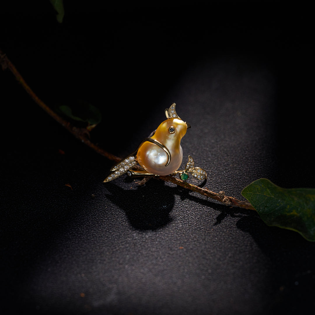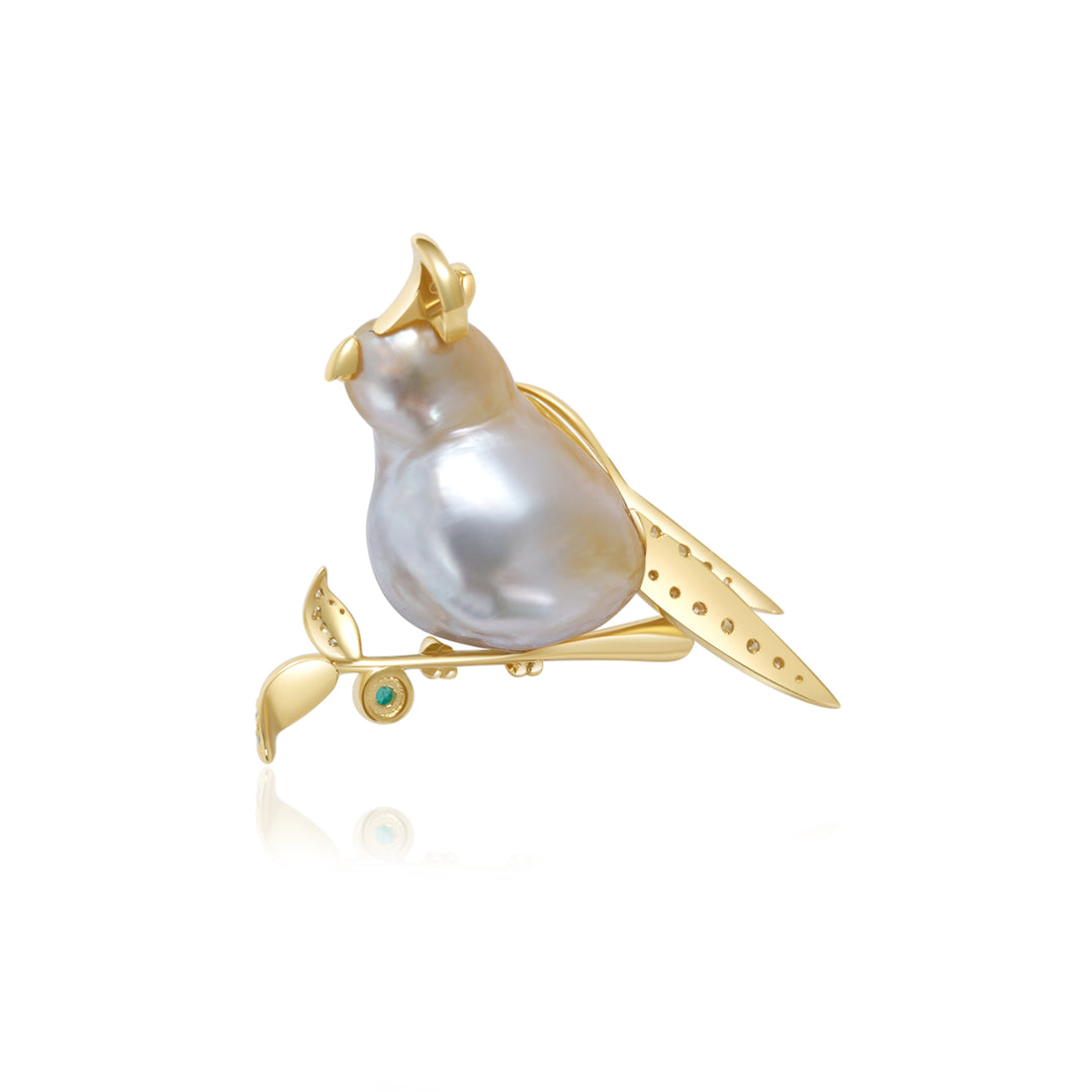 18k Solid Gold Diamond South Sea Baroque Pearl Pendant & Brooch DR00030 - PEARLY LUSTRE