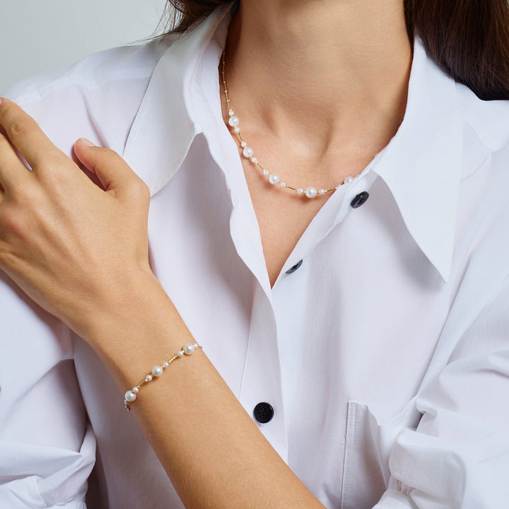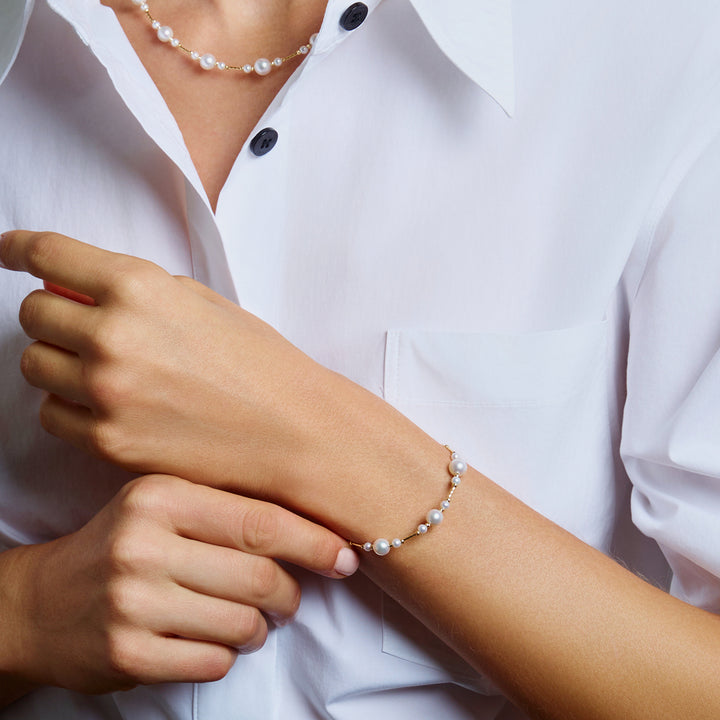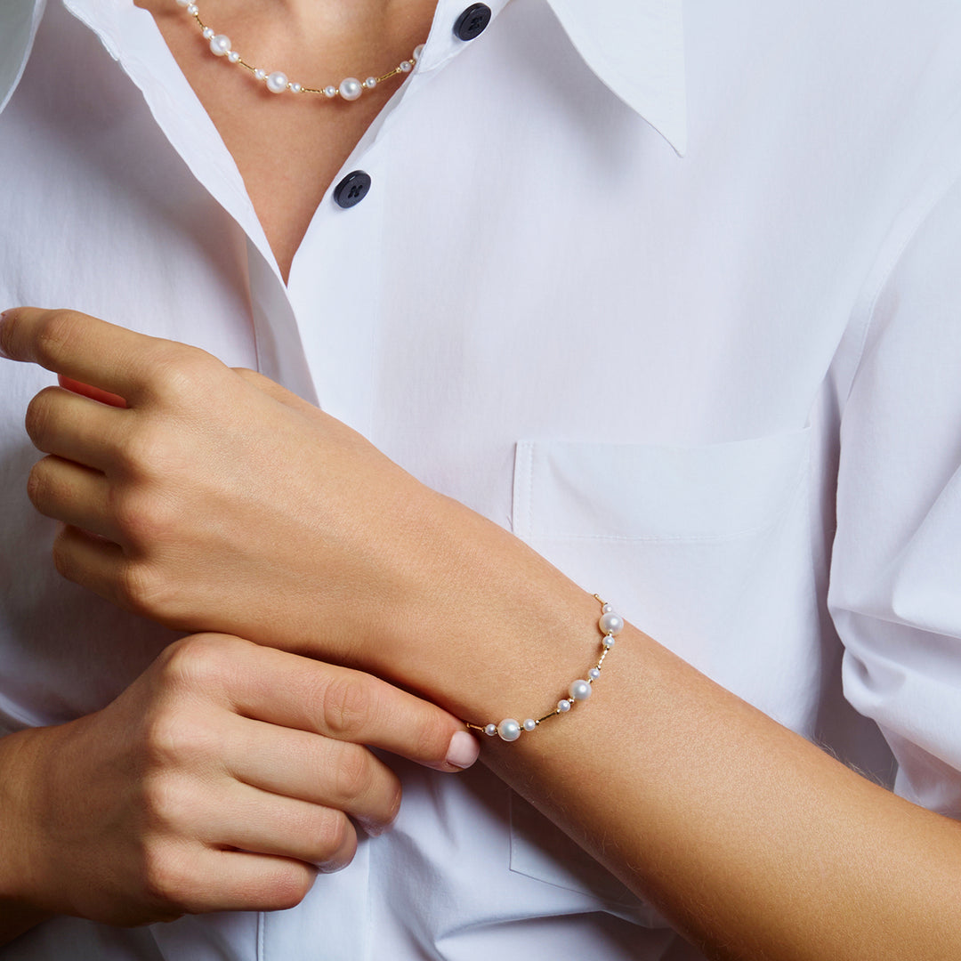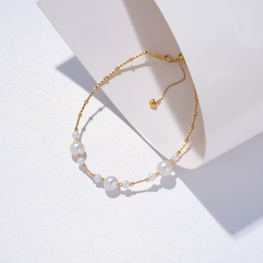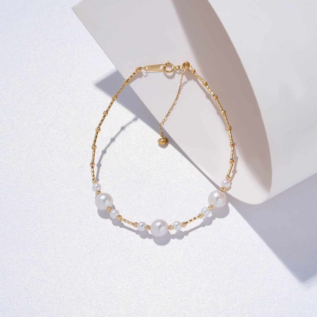 18K Solid Gold Freshwater Pearl Bracelet KB00049 - PEARLY LUSTRE