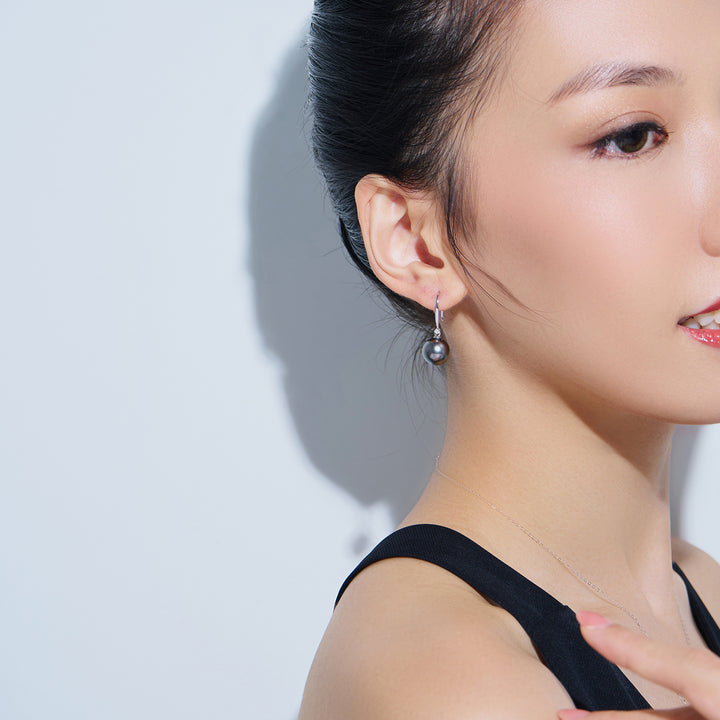 Elegant 18K Solid Gold Tahitian Pearl Earrings KE00266 - PEARLY LUSTRE