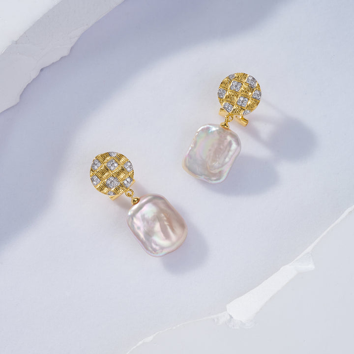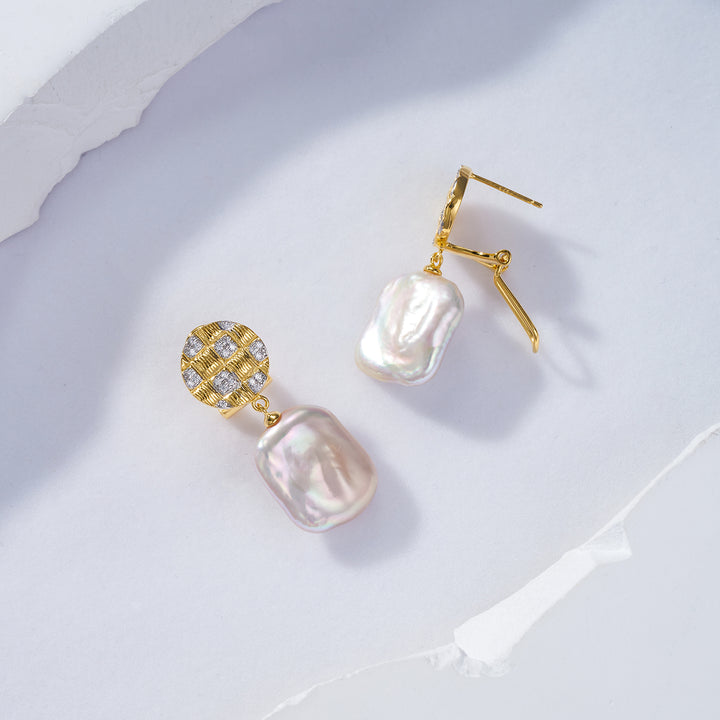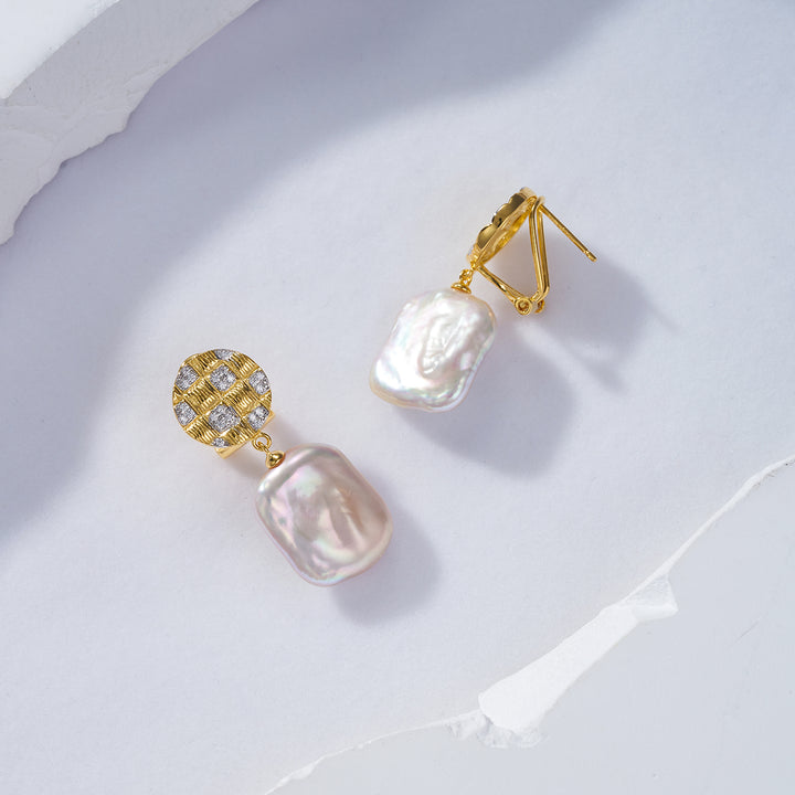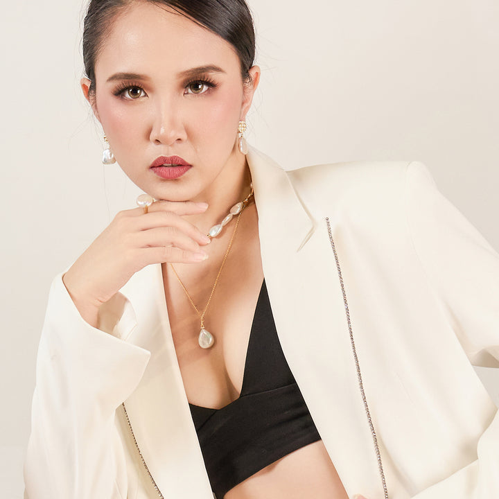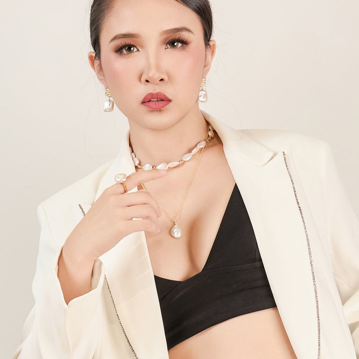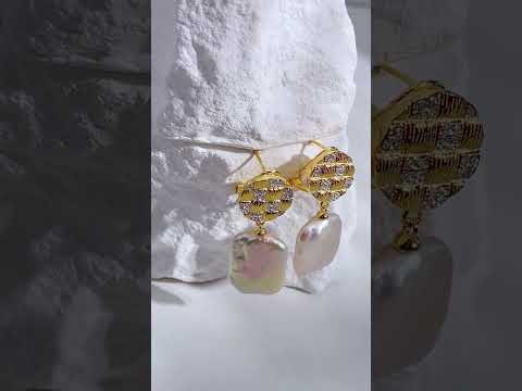 إضافة رائعة لأي خزانة ملابس، اهديها هذه الجمال اللامحدود - مجموعة من لآلئ baroque المربعة الفريدة تحت تحفة من الأعمال المعدنية.