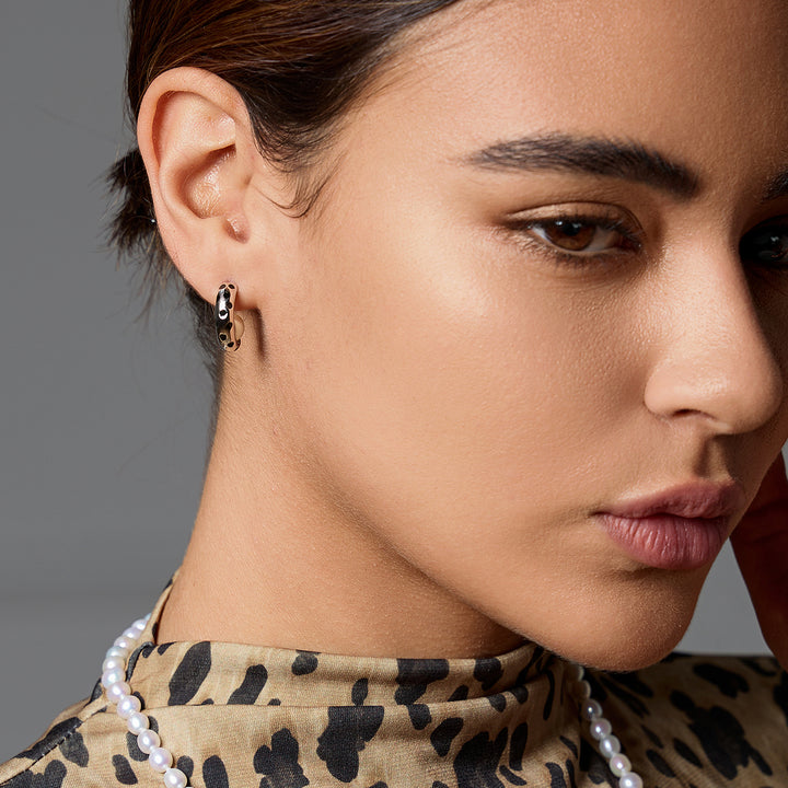 نقدم لكم أقراط ذيل الفهد من مجموعة سفاري، المستوحاة من جمال الفهد الأنيق. يرمز إلى المرأة العصرية والمستقلة - الرشيقة والطموحة والأنيقة. هذه الأقراط متعددة الاستخدامات وأنيقة. تنضح طبعة الفهد بالطموح، بينما يرمز الذيل إلى الشهوانية. مثالي للنساء اللاتي يجسدن القوة والجاذبية.
