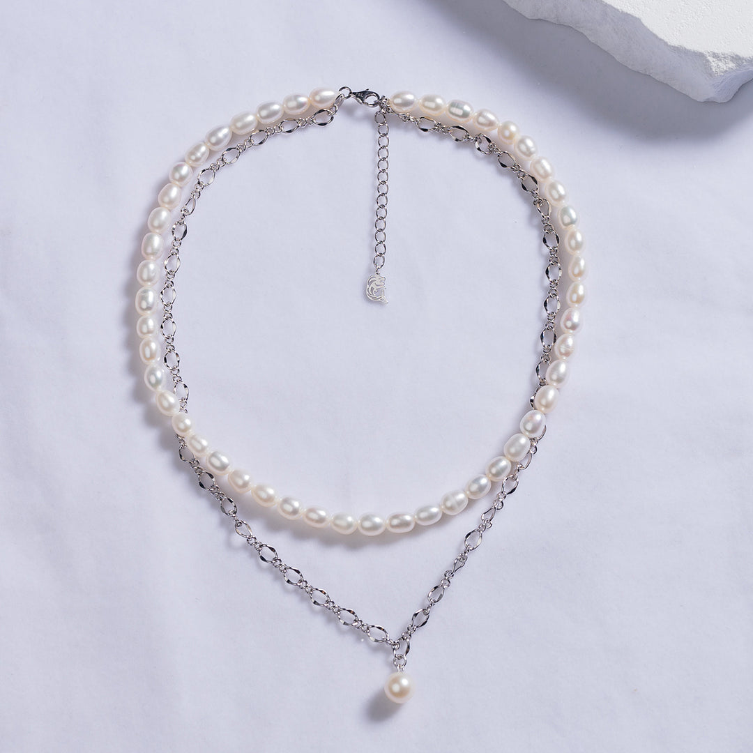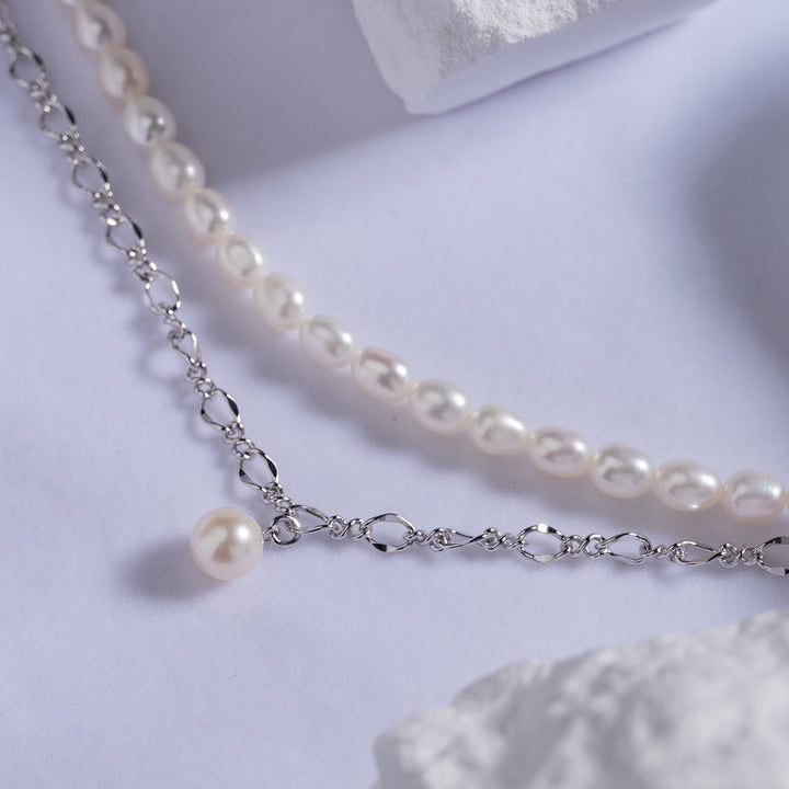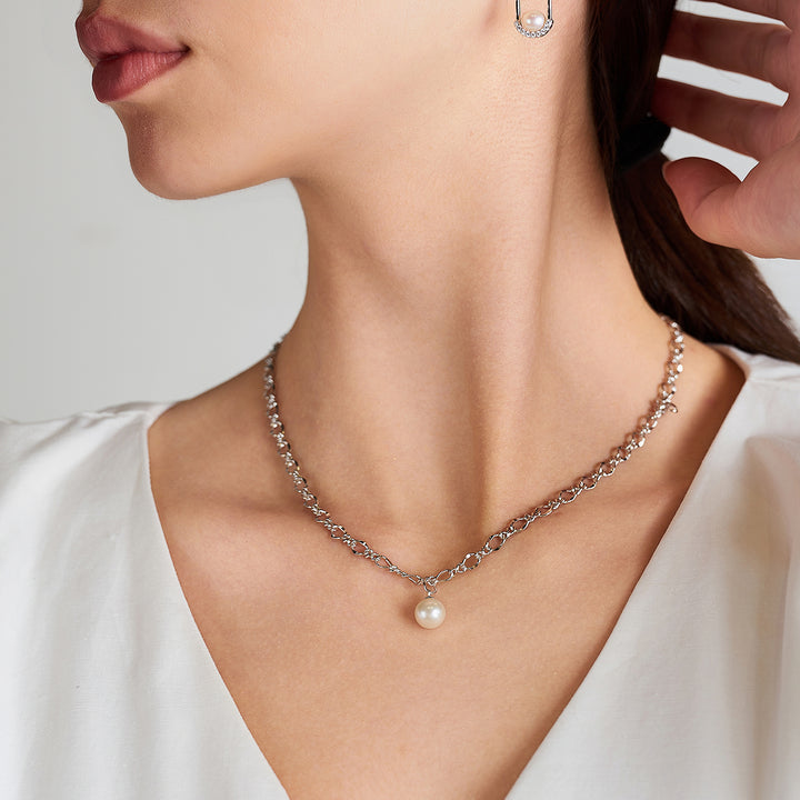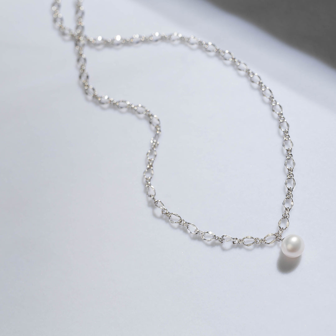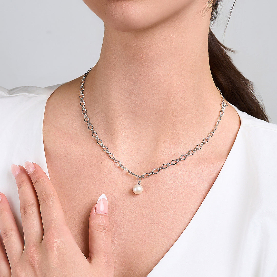 سلسلة عصرية مع لؤلؤة متوهجة واحدة ستتناسب مع قلادة اللؤلؤ الخاصة بنا. لمسة بسيطة ولكنها سهلة على ملابسك لهذا اليوم.