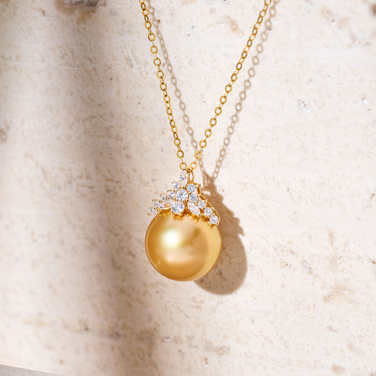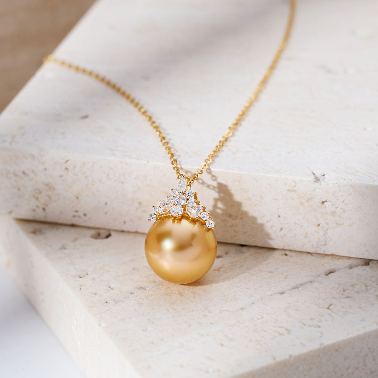 18K Solid Gold South Sea Golden Pearl Necklace KN00336 - PEARLY LUSTRE