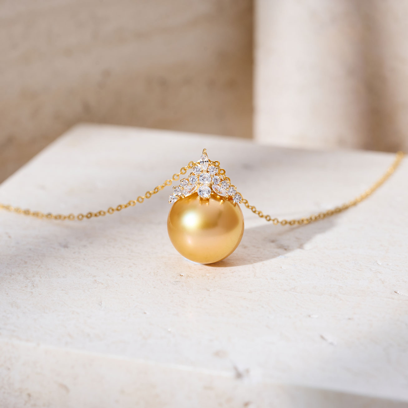 اكتشف روعة مجموعتنا من اللؤلؤ الذهبي لبحر الجنوب. معروفة ببريقها الرائع ولونها الذهبي الغني، تجسد هذه اللآلئ الفخامة والرقي، مما يجعلها الزينة المثالية لمن يتمتعون بذوق رفيع.