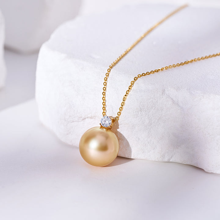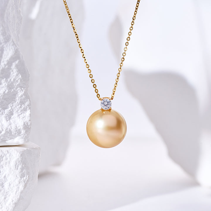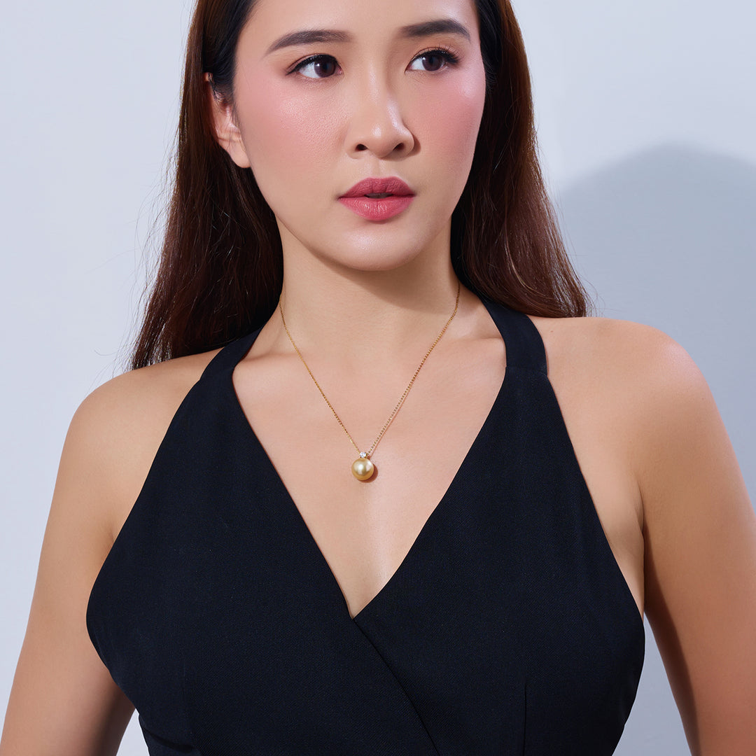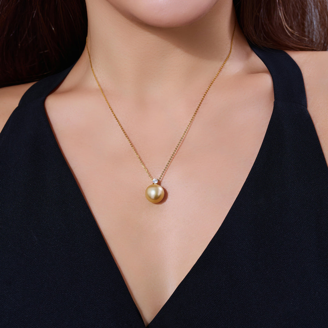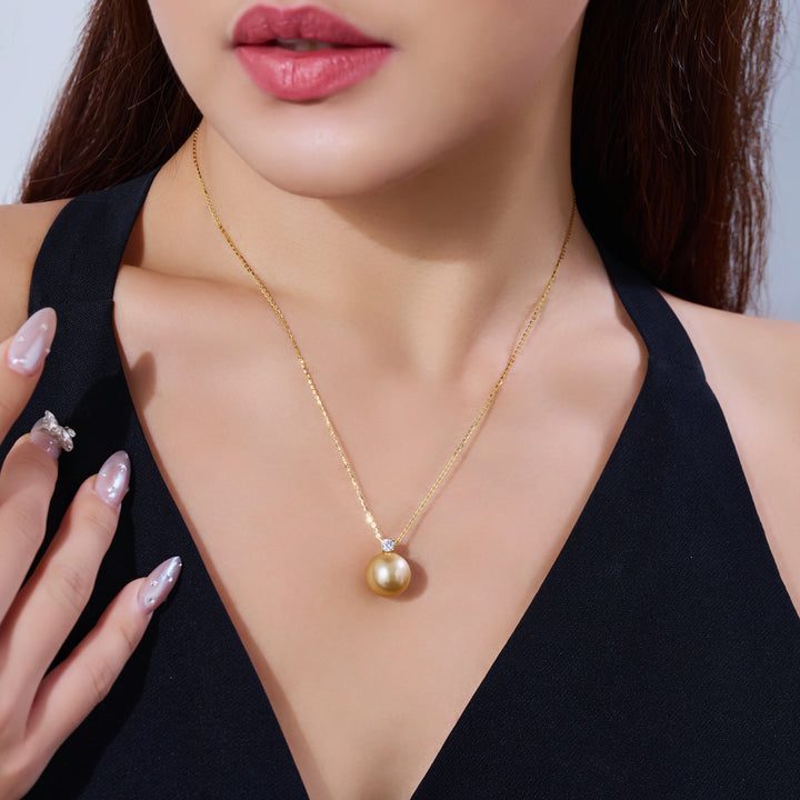 18K Solid Gold South Sea Golden Pearl Necklace KN00351 - PEARLY LUSTRE