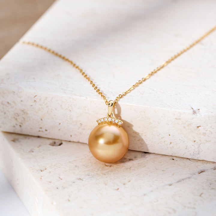 18K Solid Gold South Sea Golden Pearl Necklace KN00360 - PEARLY LUSTRE