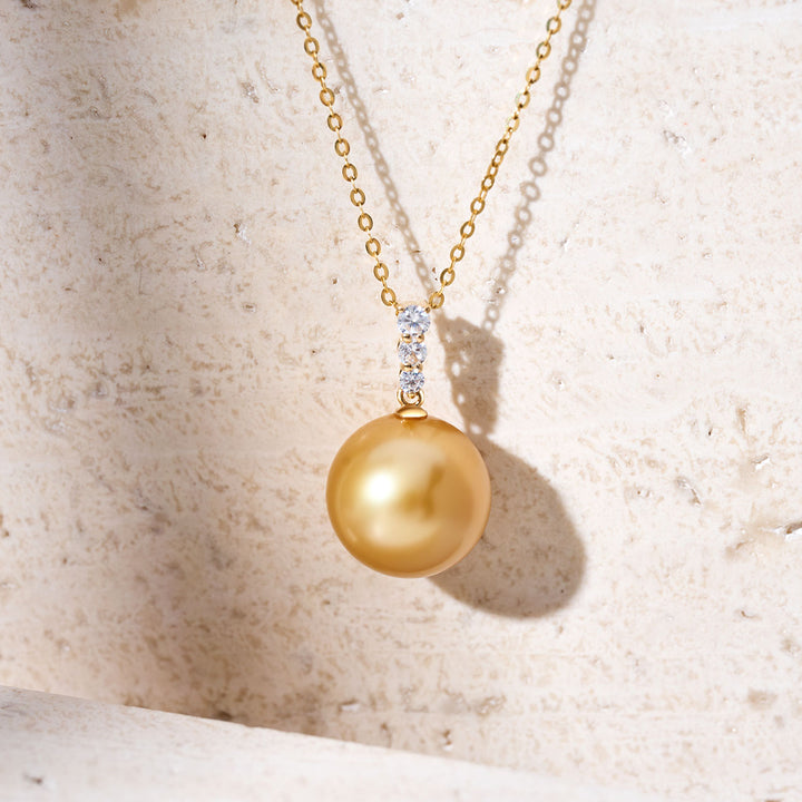 • 13-14 مم South Sea Golden Pearl، شكل دائري، أعلى تصنيف