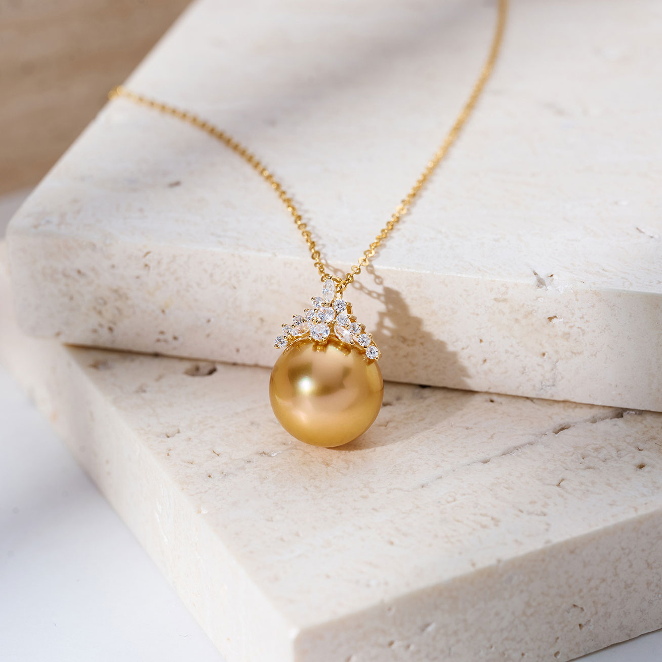 18K Solid Gold South Sea Golden Pearl Necklace KN00336 - PEARLY LUSTRE
