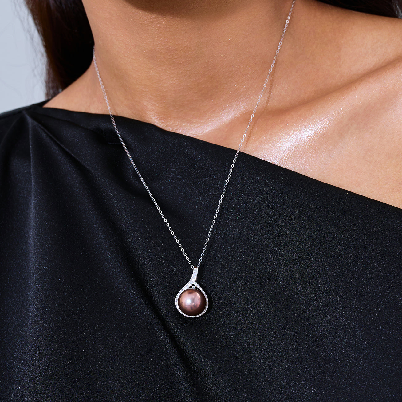 عقد لؤلؤة إديسون البنفسجية من الذهب الخالص عيار 18 قيراط KN00382