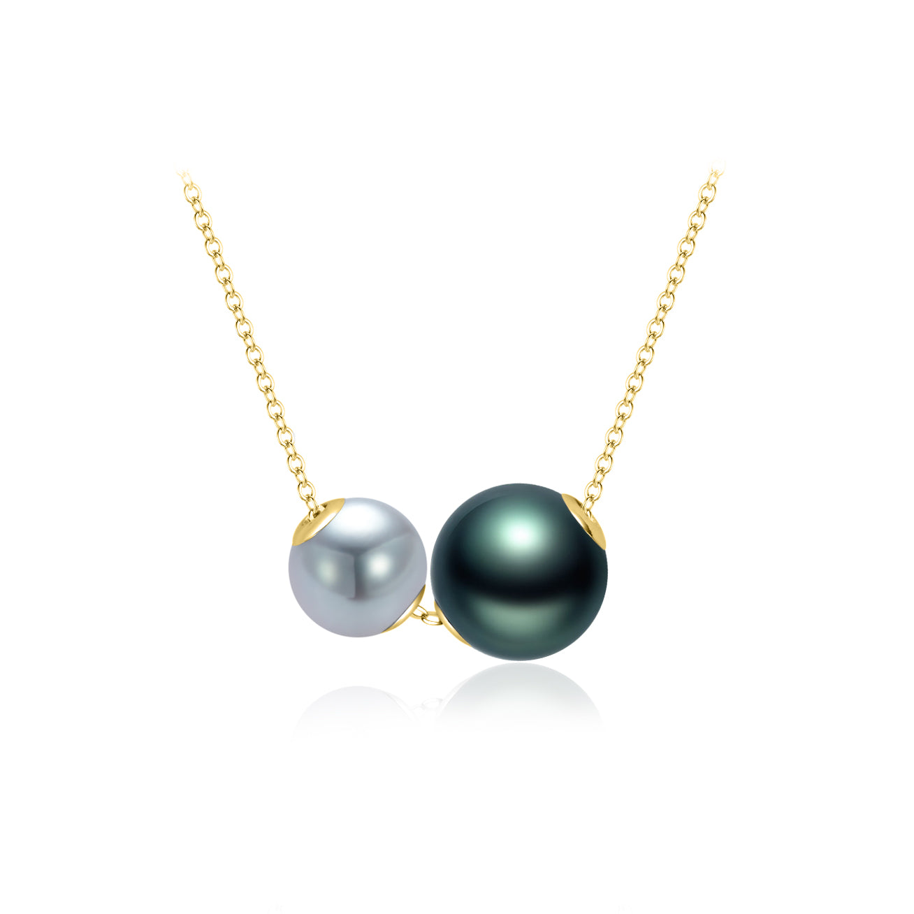 عقد من الذهب الخالص عيار 18 قيراط مع لؤلؤ أكويا وتاهيتي KN00371 | هارموني
