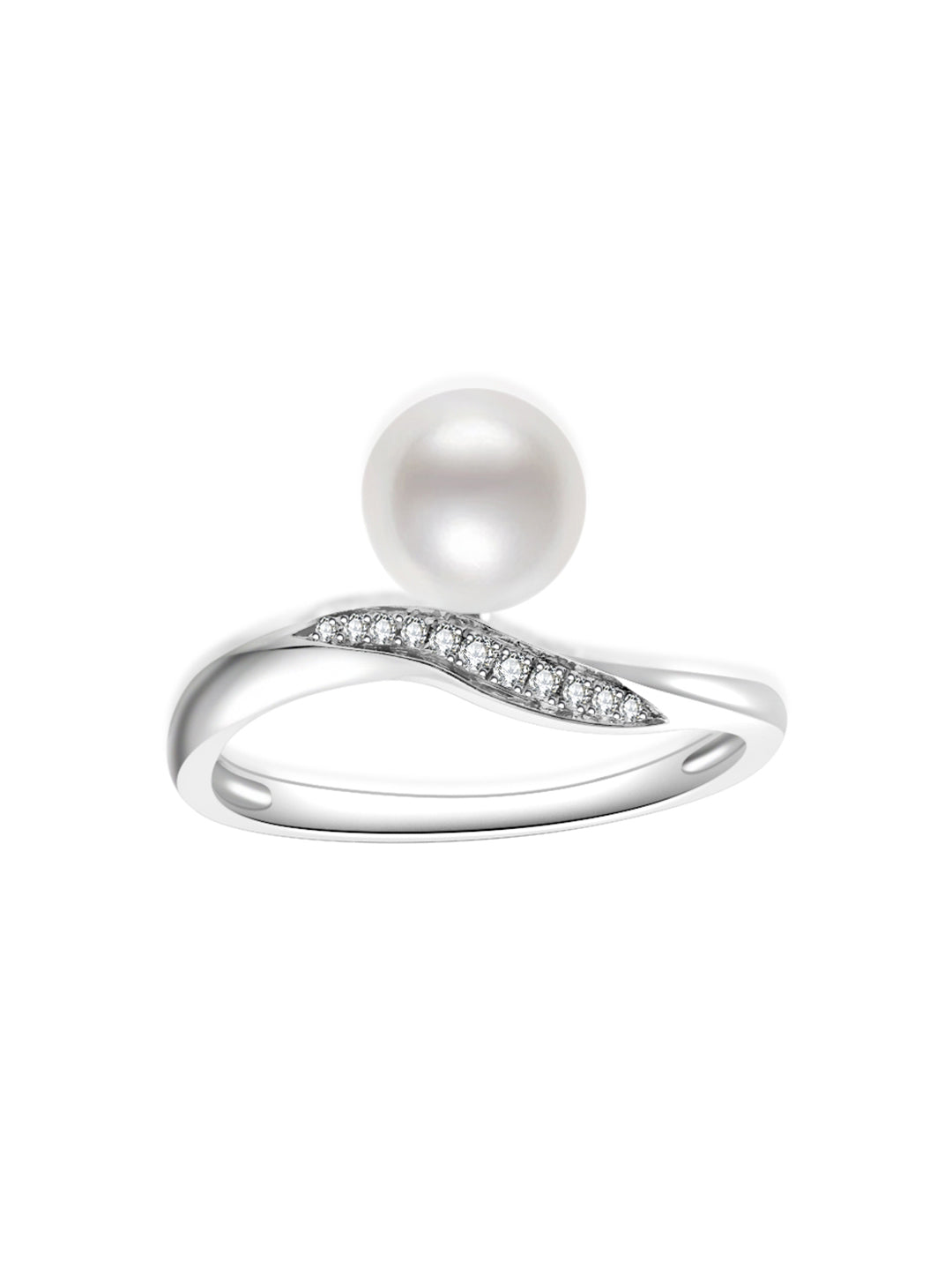 خاتم من الذهب الخالص عيار 18 قيراط والماس ولؤلؤ أكويا هاناداما KR00116