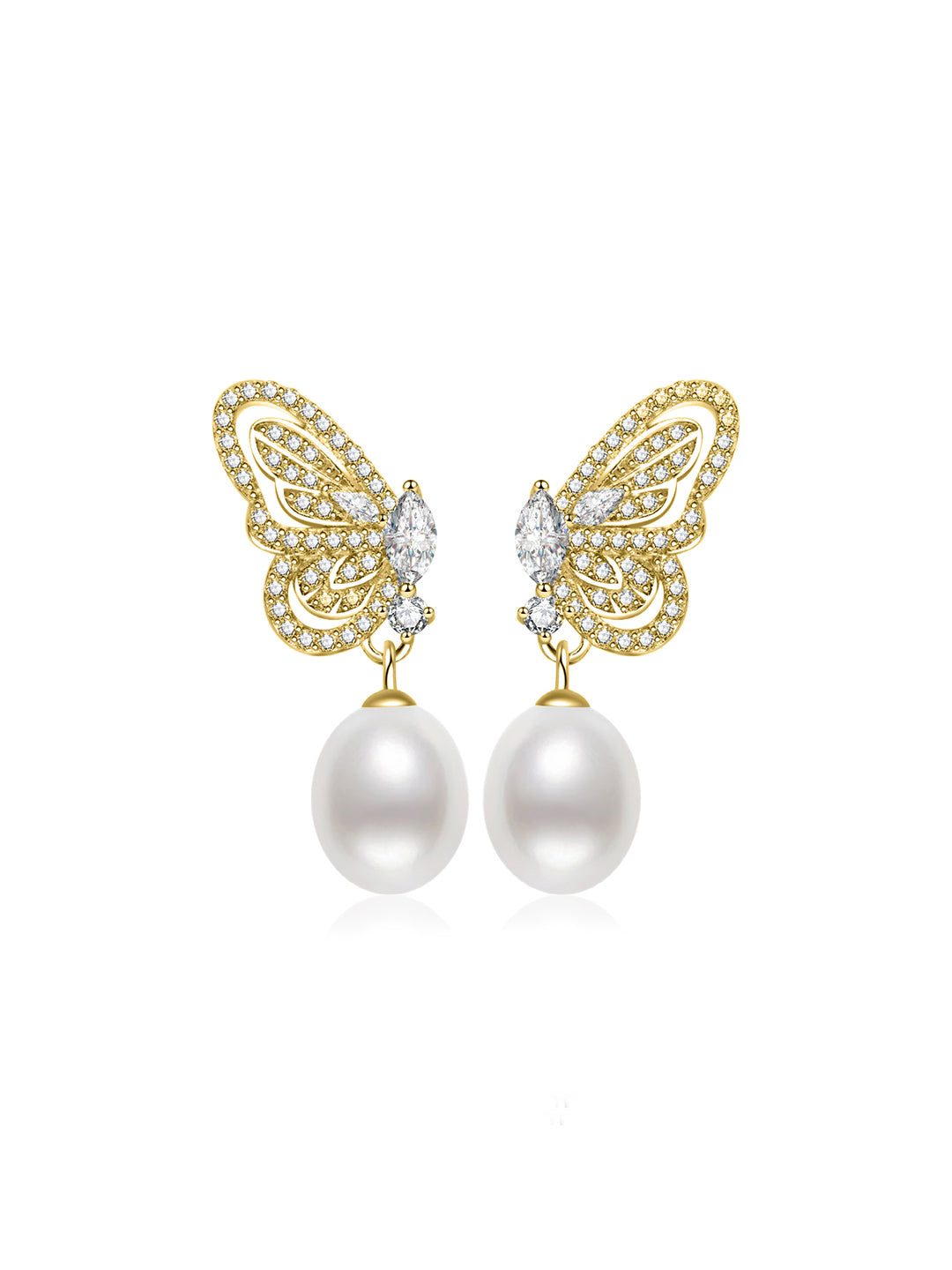أقراط لؤلؤ المياه العذبة WE01012 | BUTTERFLY