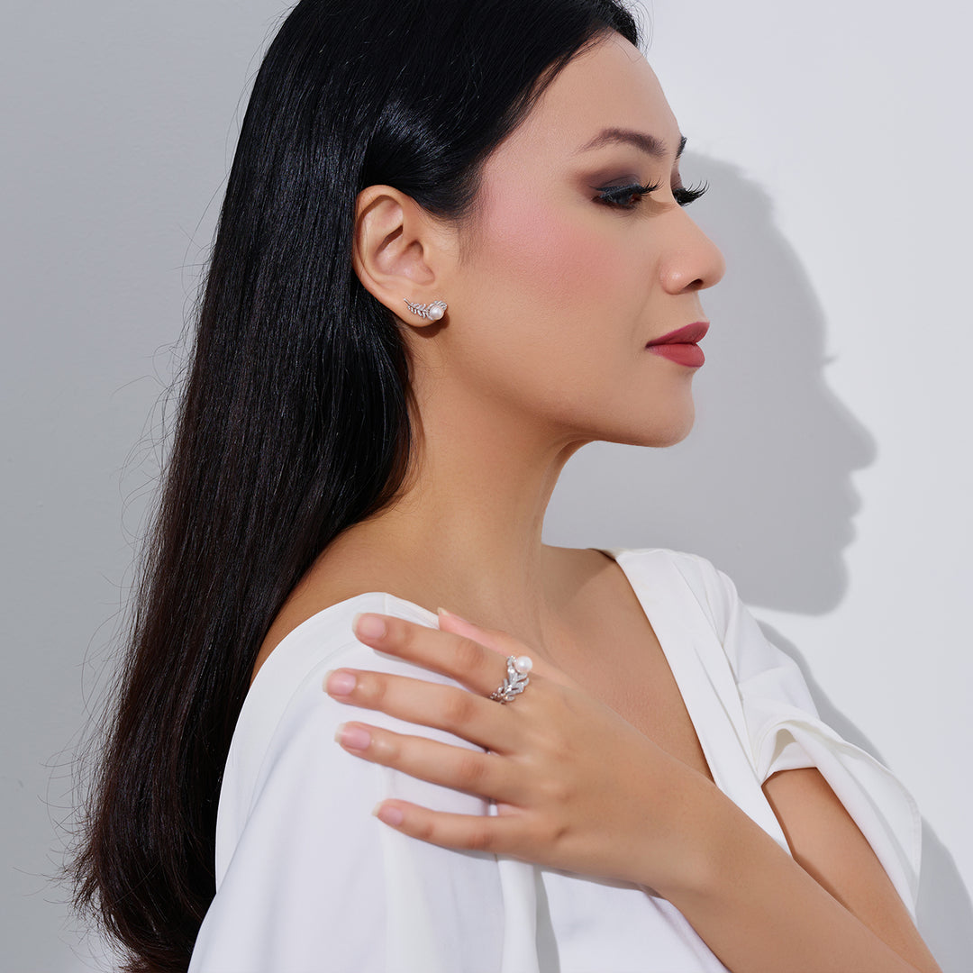 Gefertigt mit Japans feinster Akoya-Perle und elegantem Federdesign. Perfekt für die moderne, anspruchsvolle Frau.