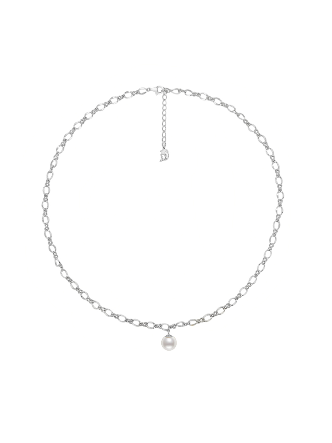 Modische Kettenhalskette mit einer einzelnen leuchtenden Perle, die zu unserer Reis- Perlenhalskette passt. Ein einfacher, aber müheloser Akzent für dein Tagesoutfit.