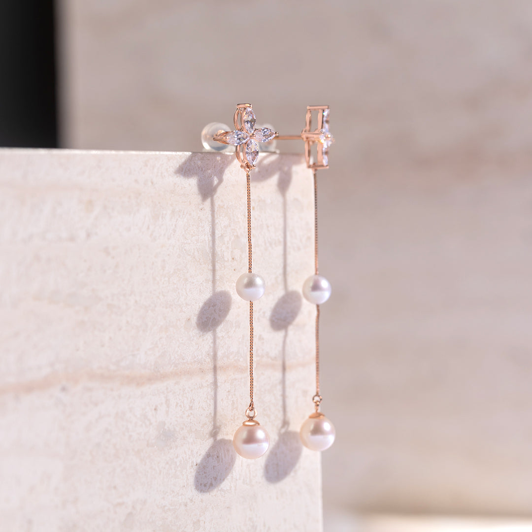 Ohrringe aus 18-karätigem Massivgold mit Süßwasserperlen KE00069 | Elegant