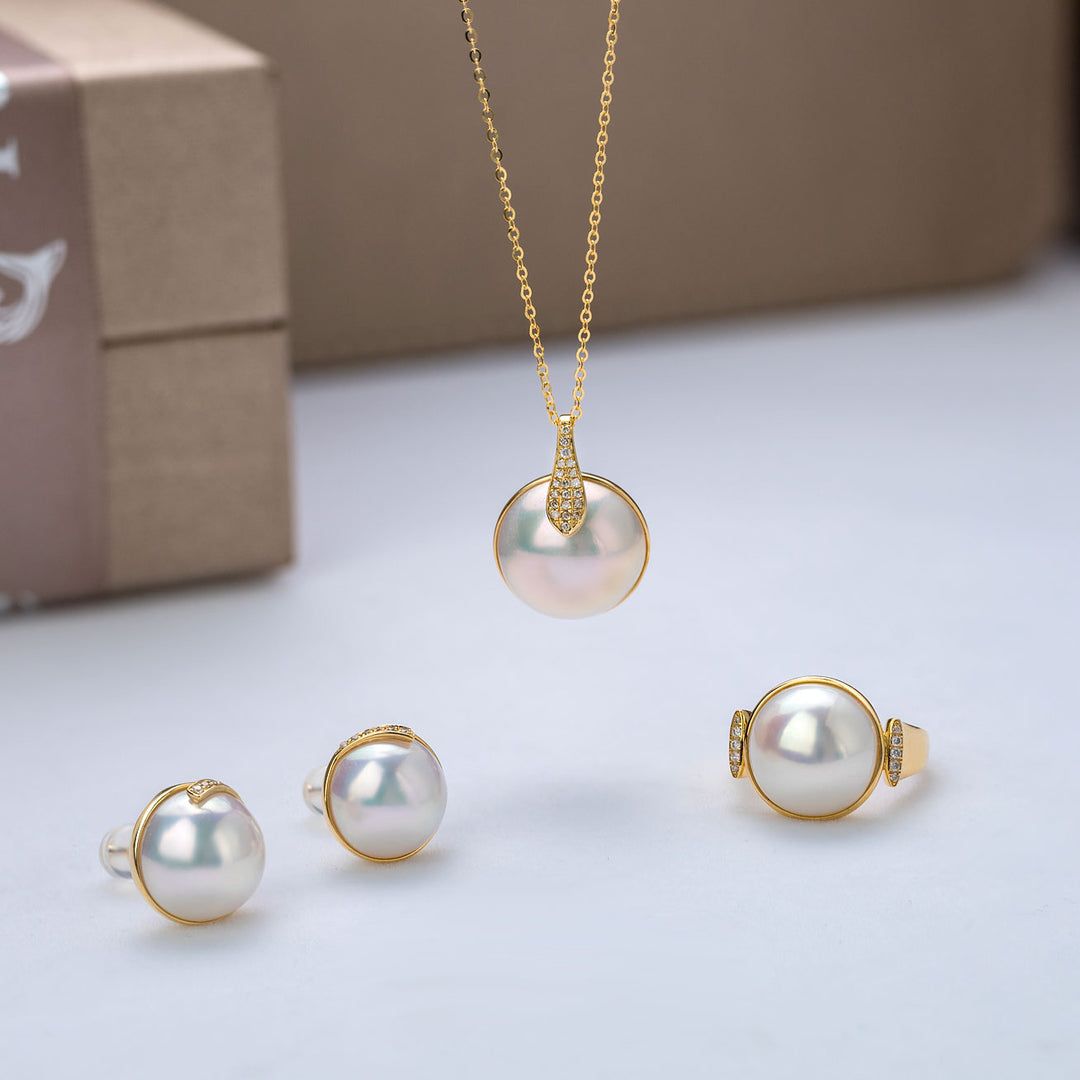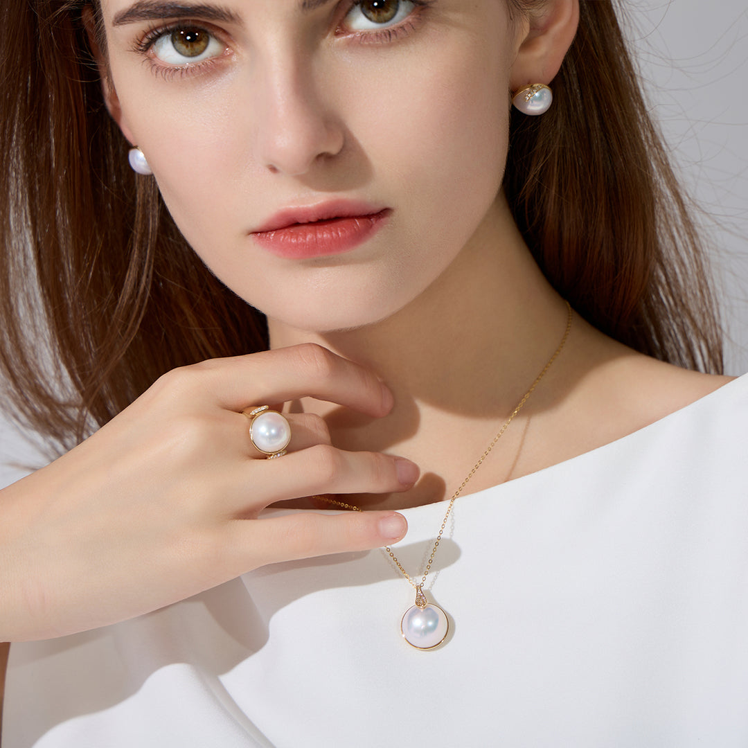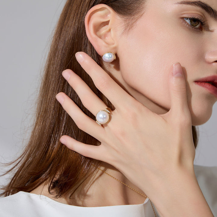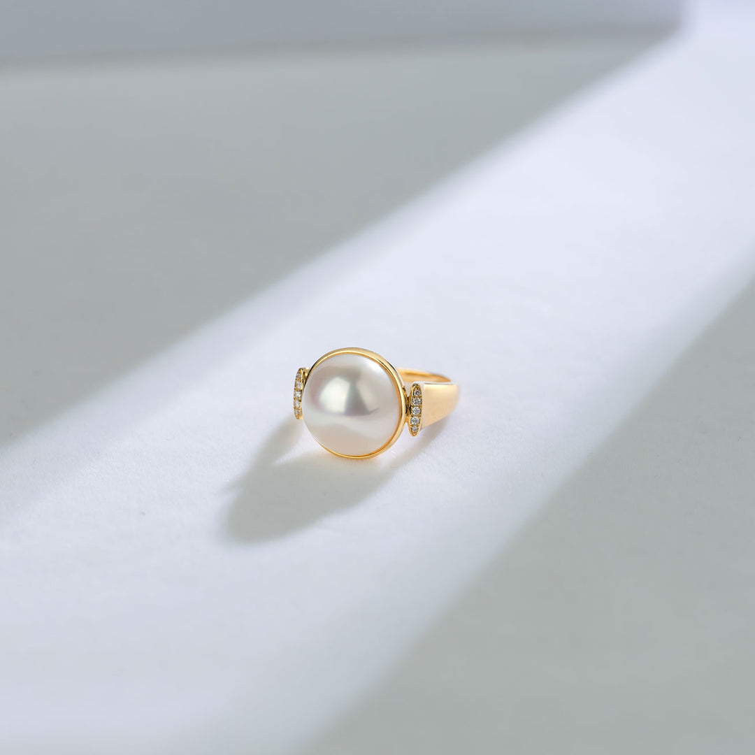 18K Diamond Edison Mabe Pearl Ring KR00059 - PEARLY LUSTRE