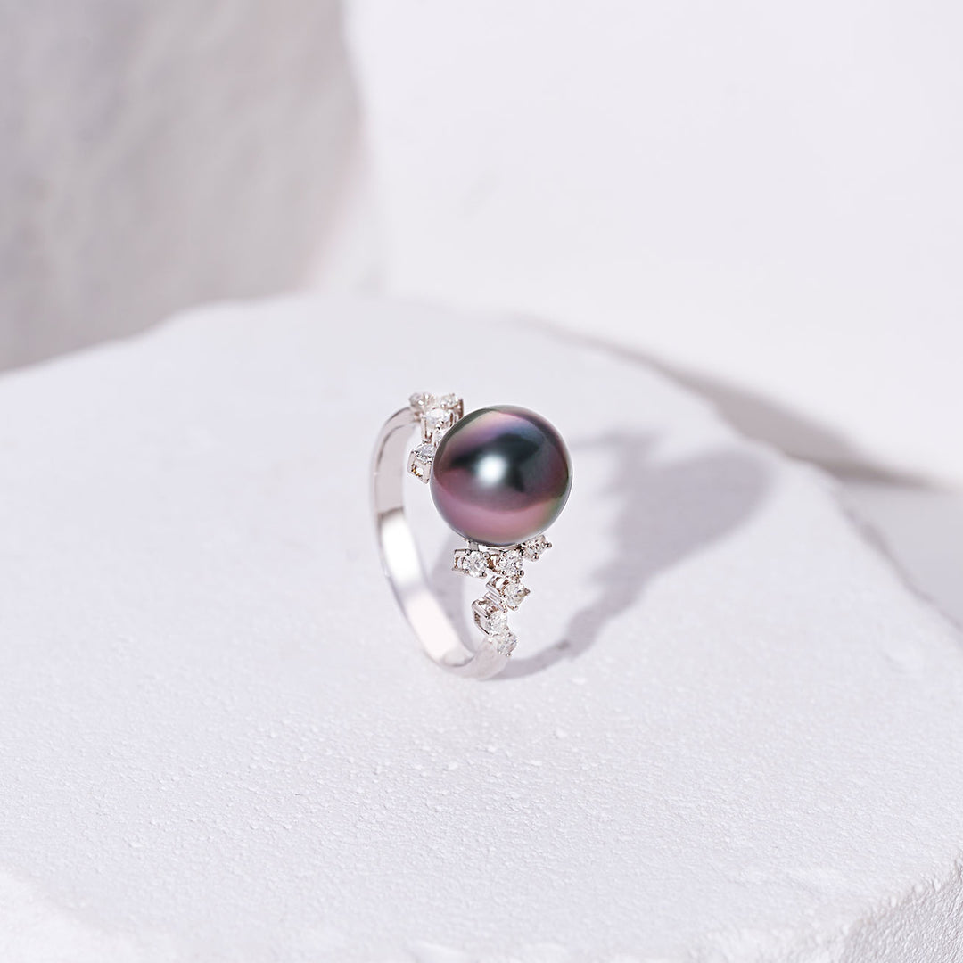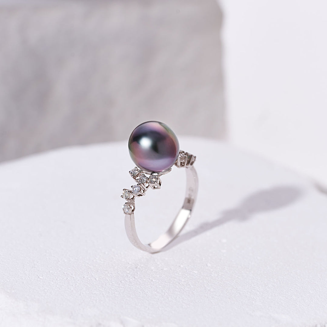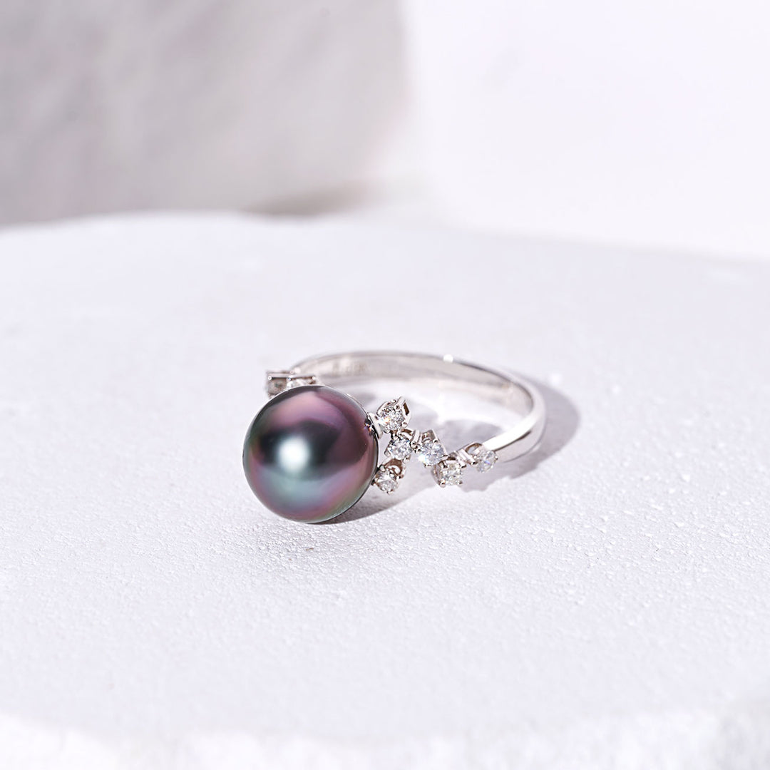 18K Diamond Tahitian Pearl Ring KR00139 - PEARLY LUSTRE