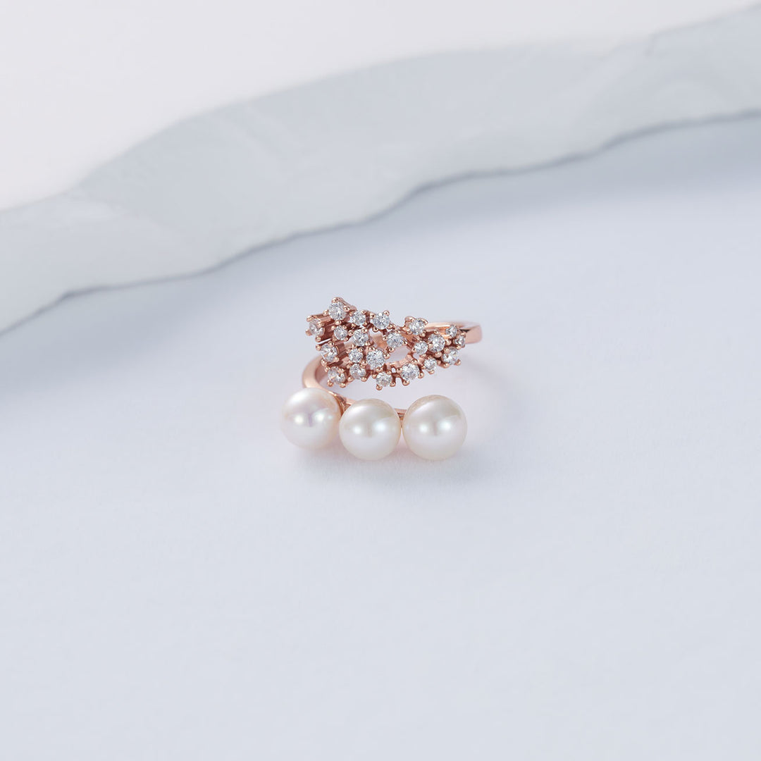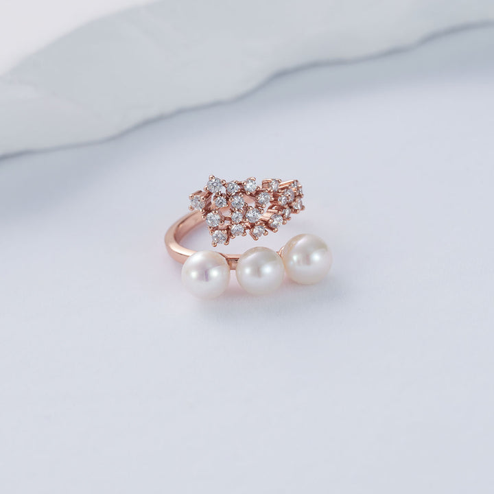 Sei mutig und elegant zugleich mit diesem wunderschönen Schmuckstück. Ein 3-Perlenring, begleitet von funkelnden Edelsteinen, um dein Outfit für eine schöne Hochzeit oder eine Zusammenkunft zu ergänzen.