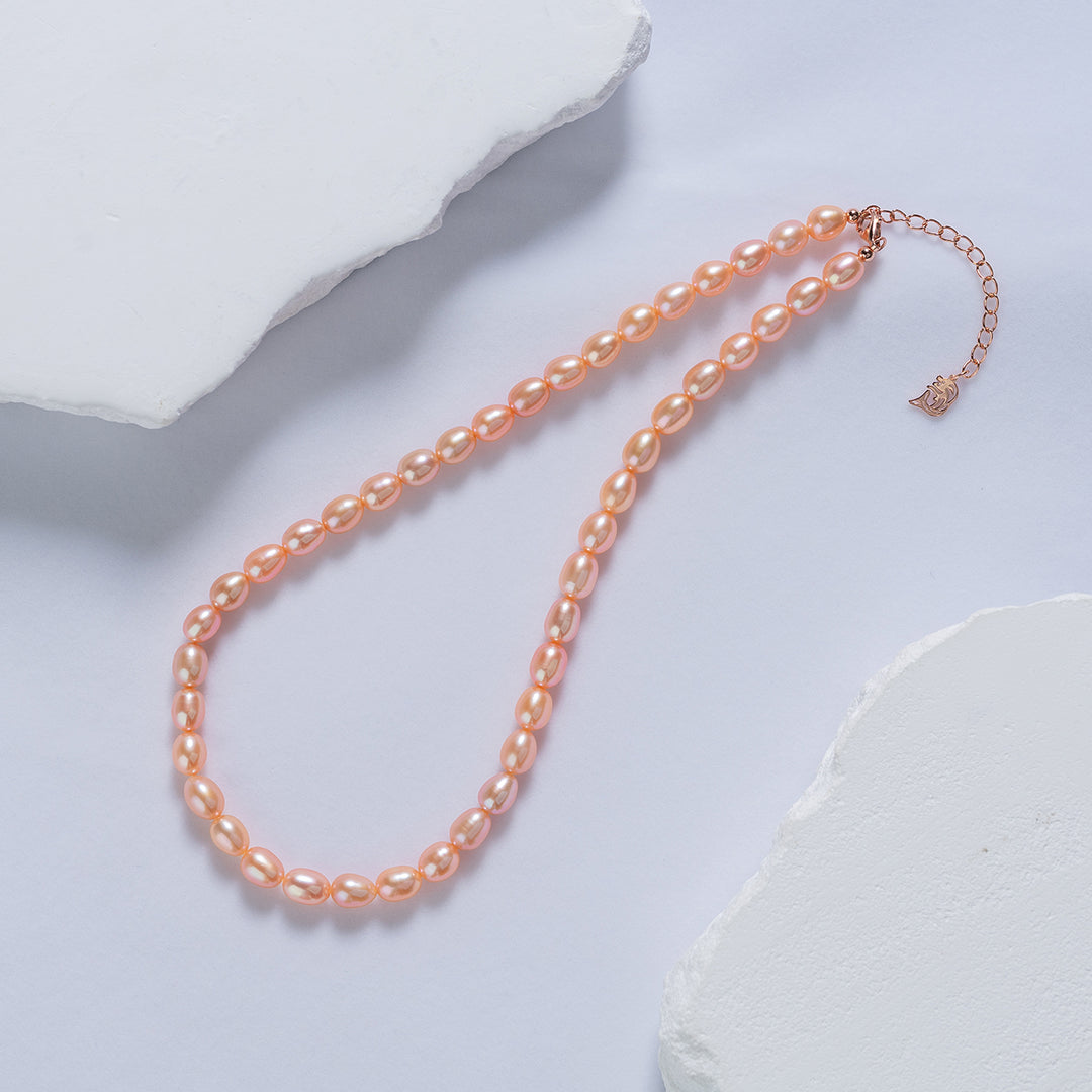Elegant Pink Freshwater Rice Pearl Necklace WN00501 - PEARLY LUSTRE