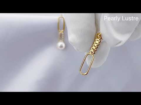 Nicht übereinstimmende, gegenüberliegende Creolen mit Perlen.  Inspiriert durch den Time-Hoop-Trend, der in der koreanischen Kultur populär geworden ist. Dieses einzigartige Stück ist modisch und im Trend. Begleitet von frischen Perlen wird die Mode mit diesem Paar moderner Perlenohrringe auf ein neues Niveau gebracht. Perfekt mit einem Blazer für ein wichtiges Arbeitstreffen für einen unabhängigen und starken Look.