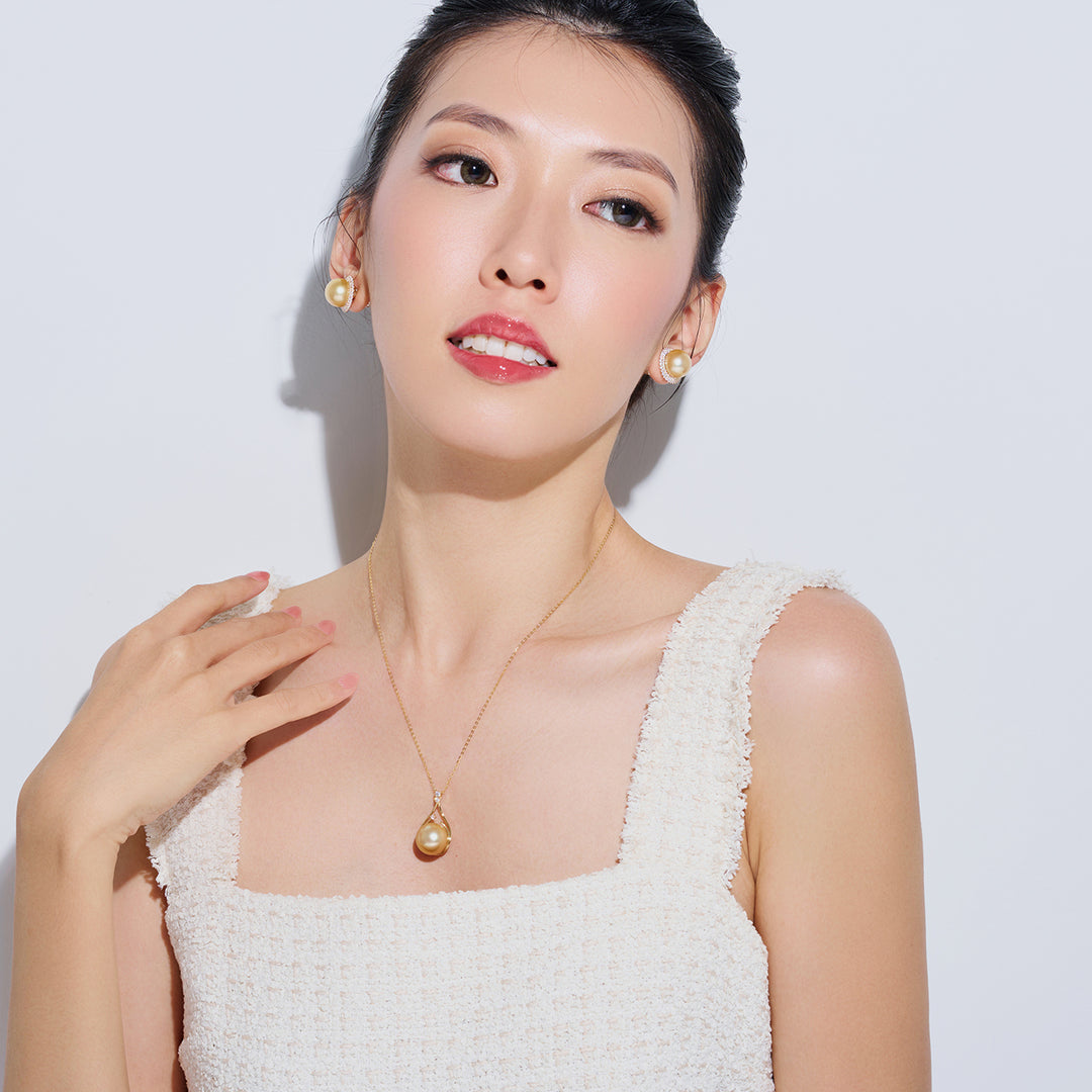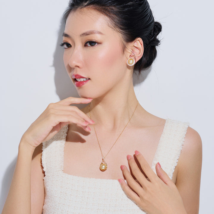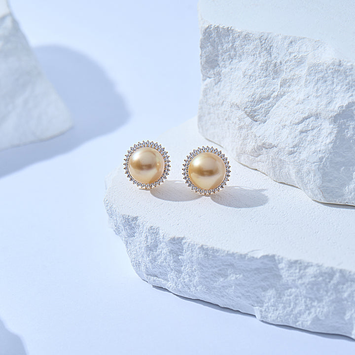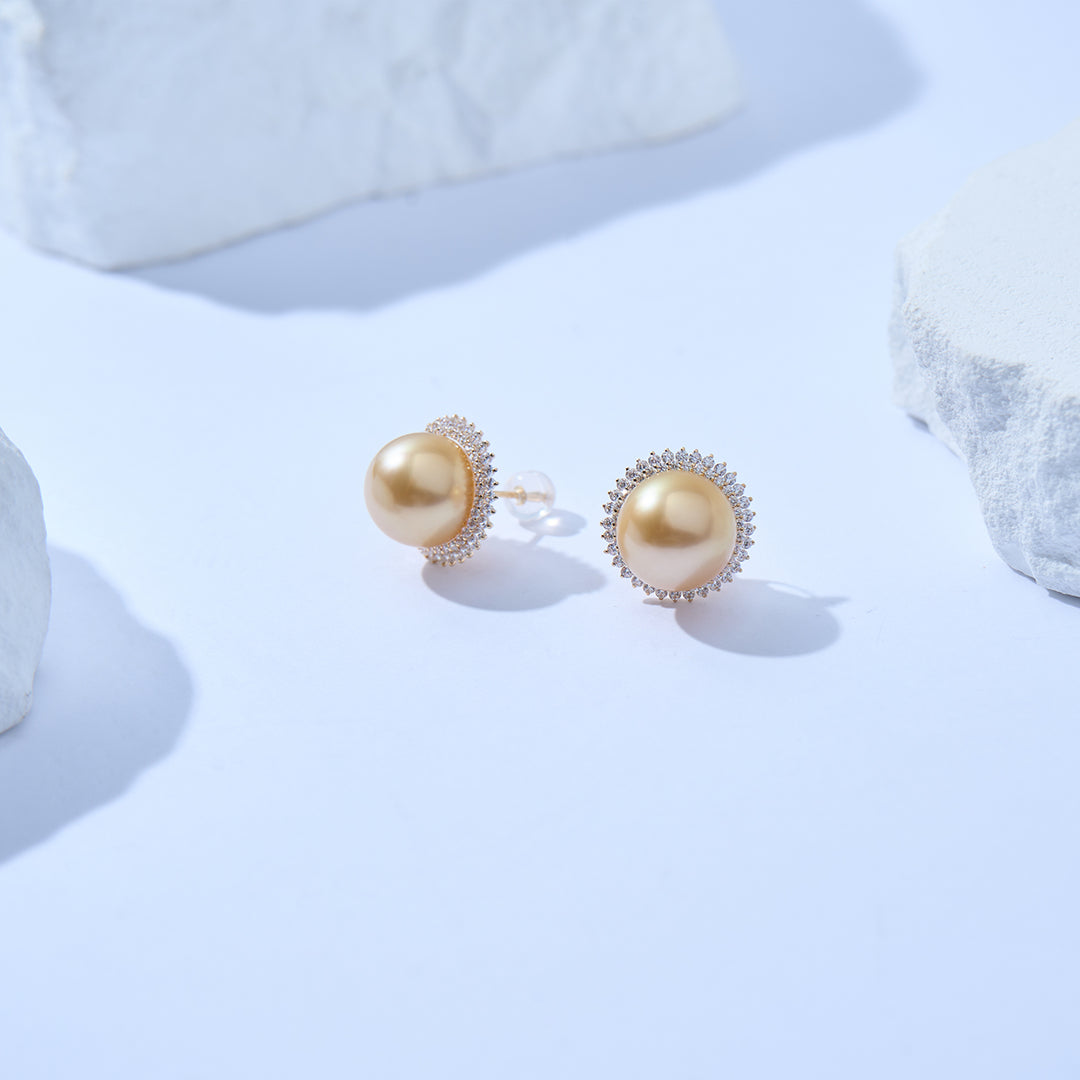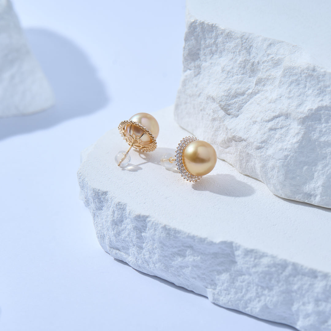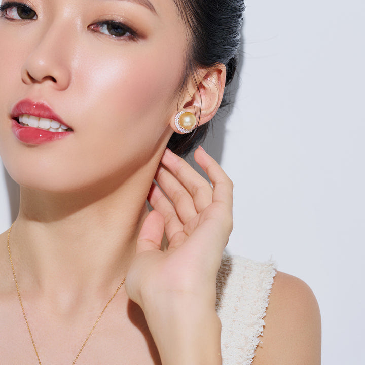 18K Solid Gold South Sea Golden Pearl Earring KE00258 - PEARLY LUSTRE