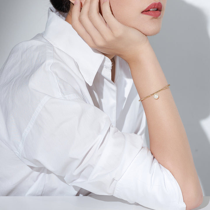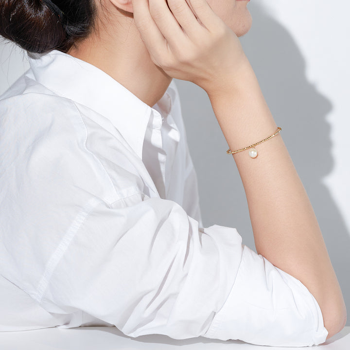 18K Solid Gold Freshwater Pearl Bracelet KB00015 - PEARLY LUSTRE