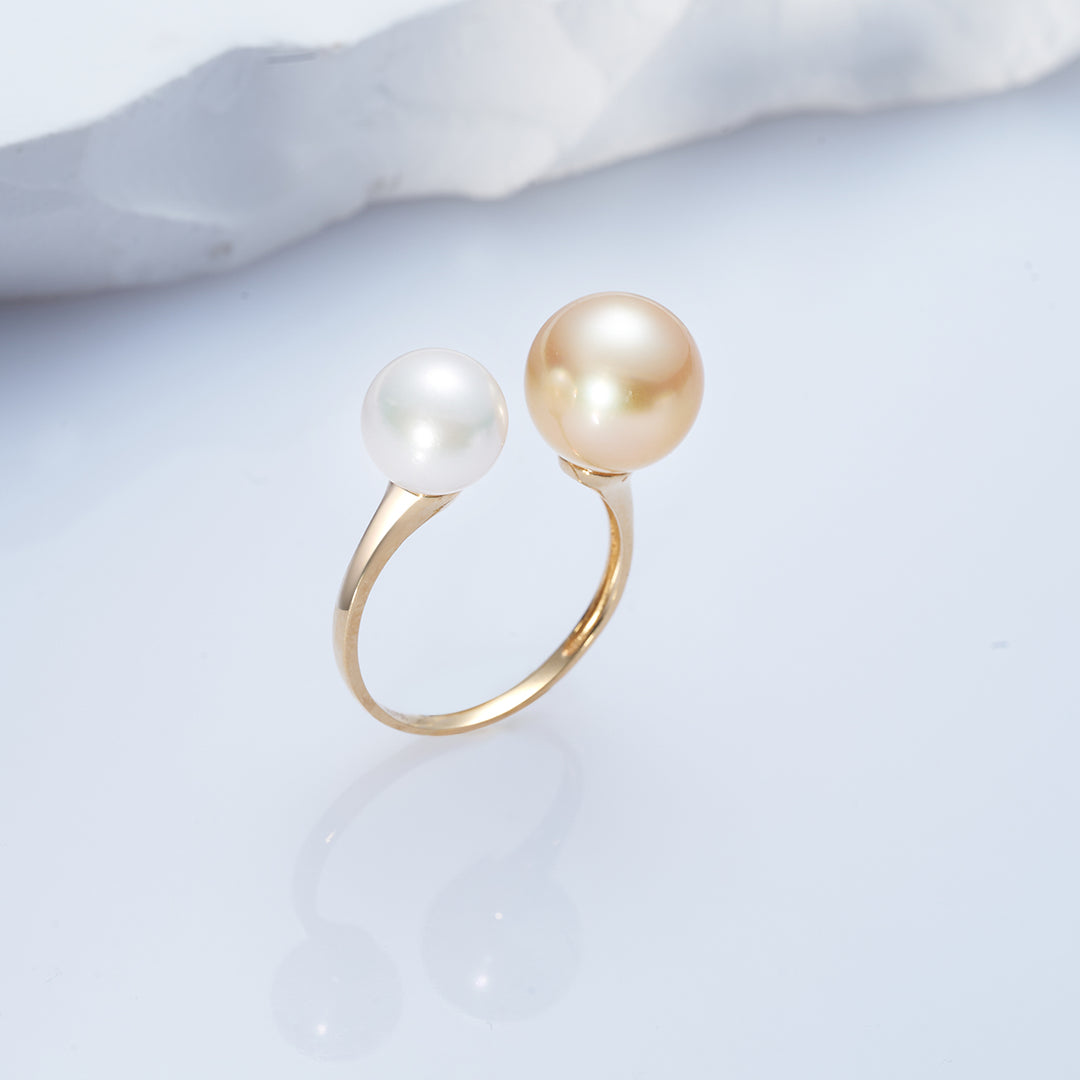18K Gold Southsea & Akoya Pearls Ring KR00092 - PEARLY LUSTRE