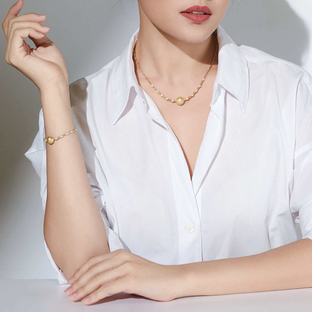 18K Solid Gold Saltwater Pearl Bracelet KB00019 - PEARLY LUSTRE