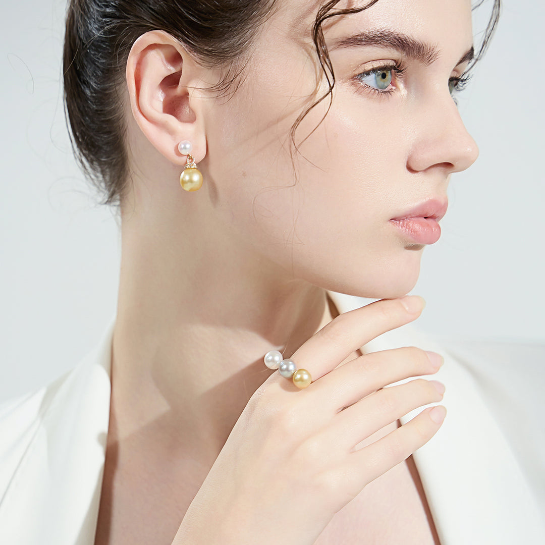 18K Solid Gold South Sea Golden and Akoya White Pearl Earrings KE00155 - PEARLY LUSTRE