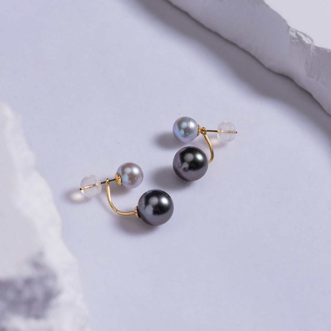 18K Tahitian & Madama Pearl Earrings KE00107 - PEARLY LUSTRE