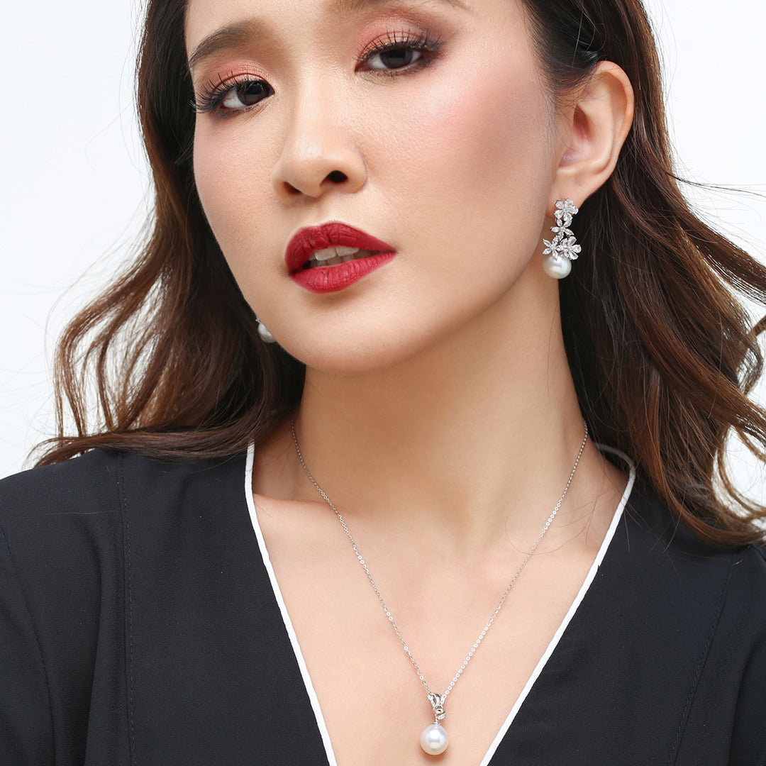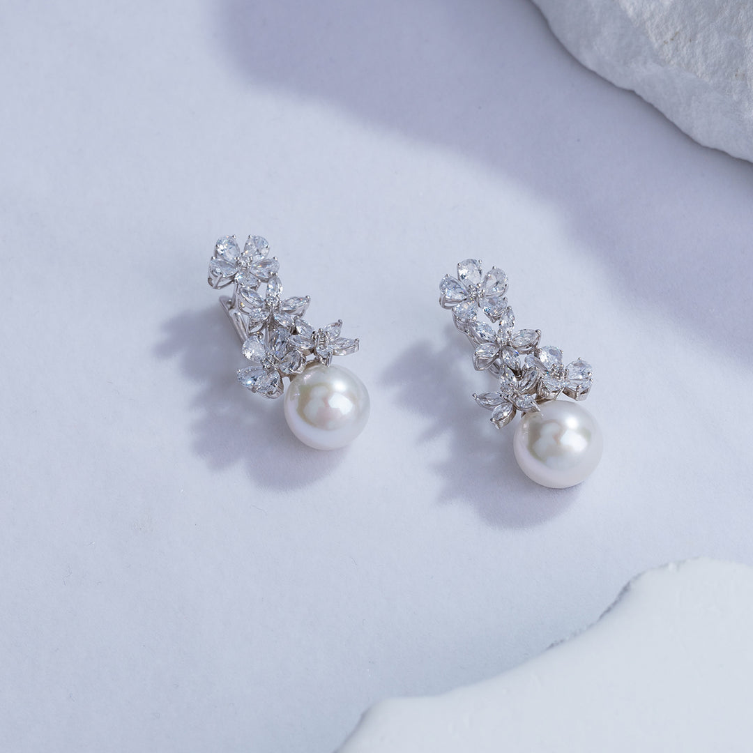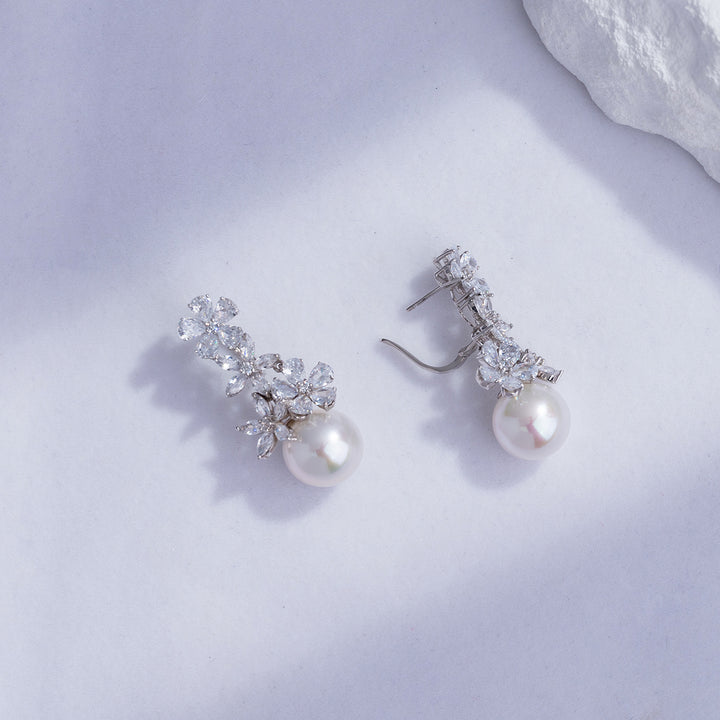 Der Edison-Perlenohrring verfügt über ein zartes Blumendesign, das anmutig und ätherisch ist.