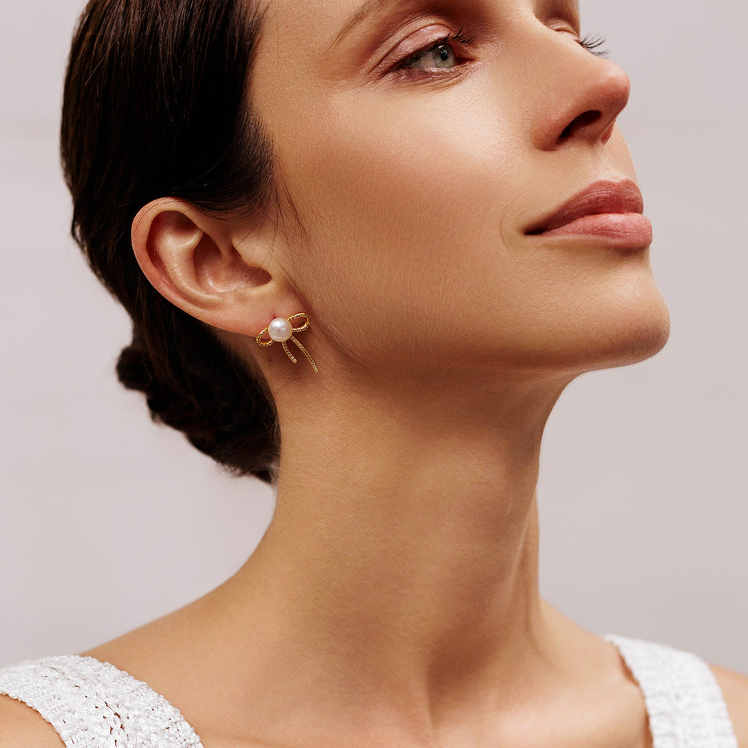 Werten Sie Ihren Party- oder Hochzeitslook mit diesen eleganten Ohrringen im Schleifendesign auf – sie vereinen Eleganz und Charme für den modernen Zelebranten.