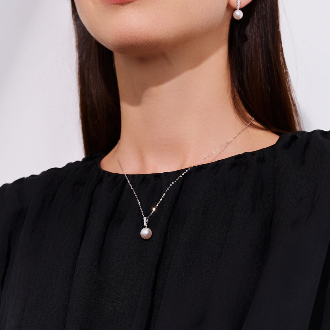 18K Diamond Akoya Pearl Necklace KN00317 | TIMELESS - PEARLY LUSTRE