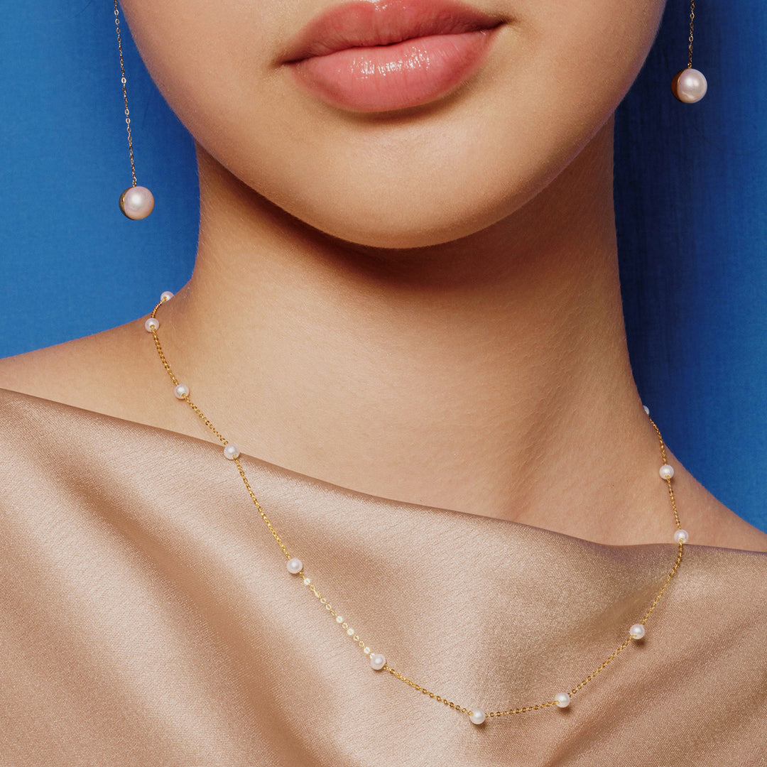 18K Solid Gold  Freshwater Pearl Necklace KN00026 - PEARLY LUSTRE