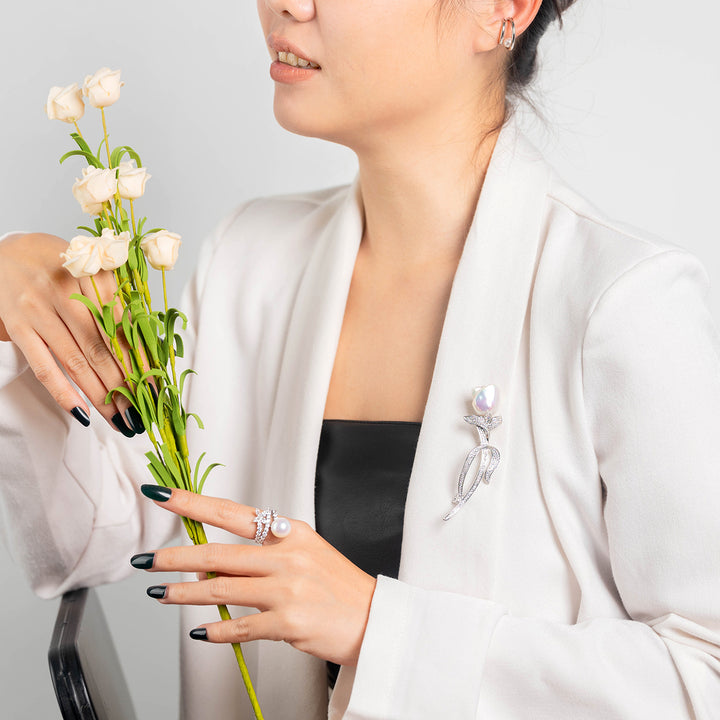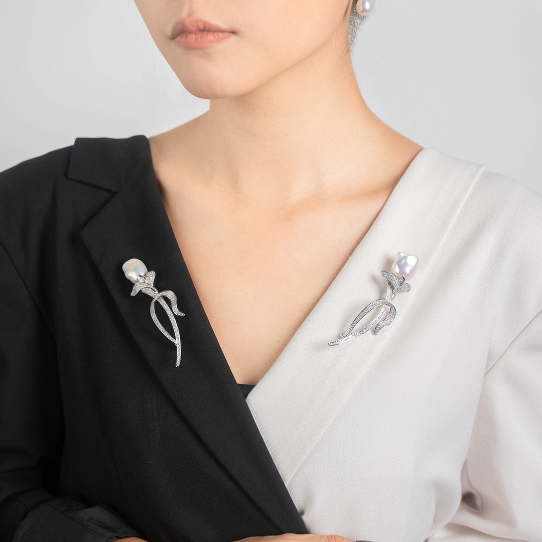Elegant Baroque Pearl Brooch WC00051 | GARDENS - PEARLY LUSTRE