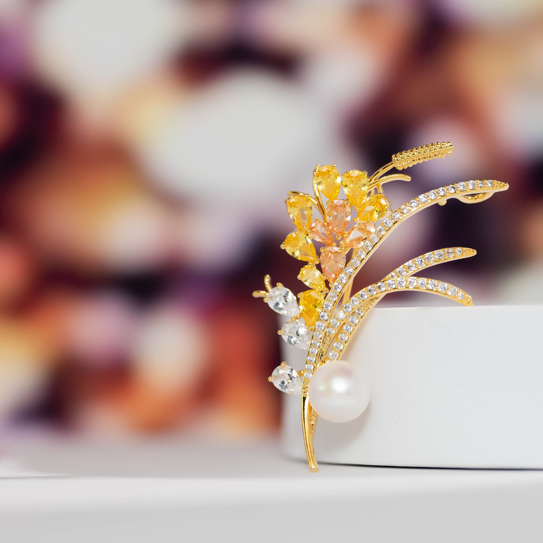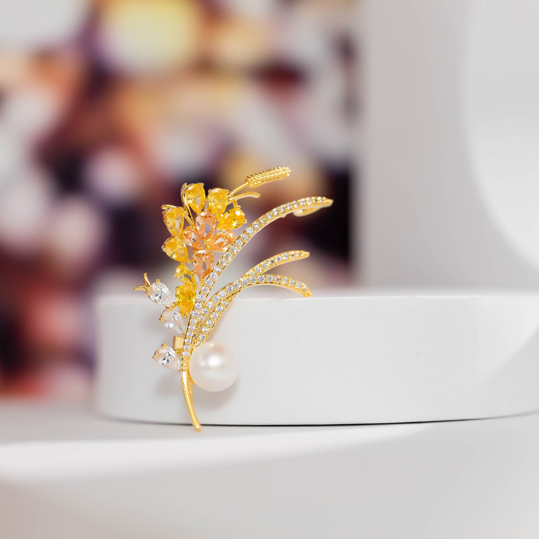 Elegant Freshwater Pearl Brooch WC00042 - PEARLY LUSTRE