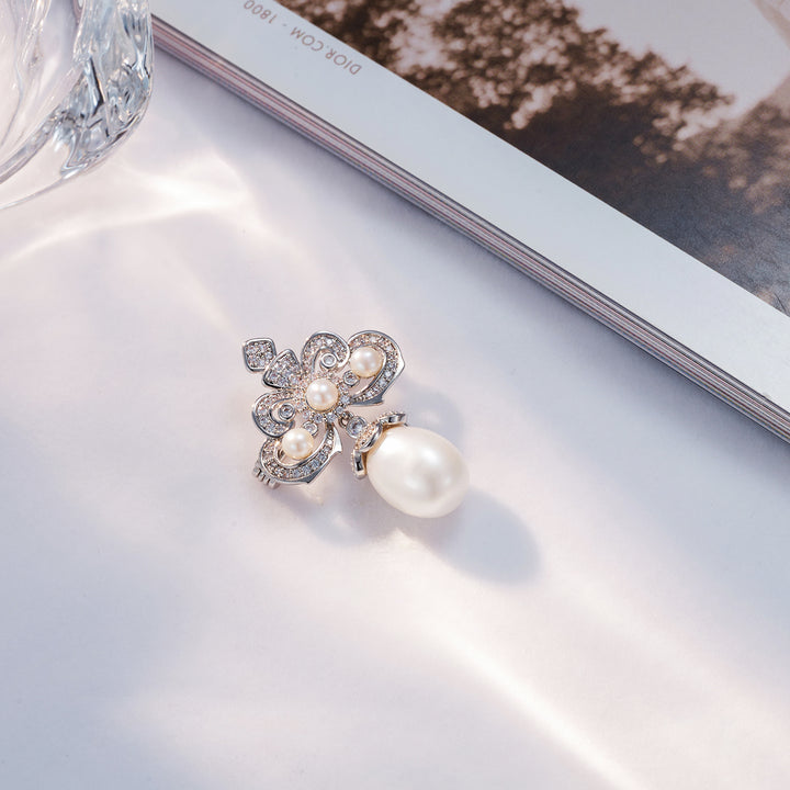 Geben Sie mit diesem Perlenschmuck ein mutiges, zeitloses Statement ab. Seine einzigartige Fassung hinterlässt garantiert einen bleibenden Eindruck. Eine Brosche mit einer exquisiten Mischung aus Tradition und modernem Charme.
