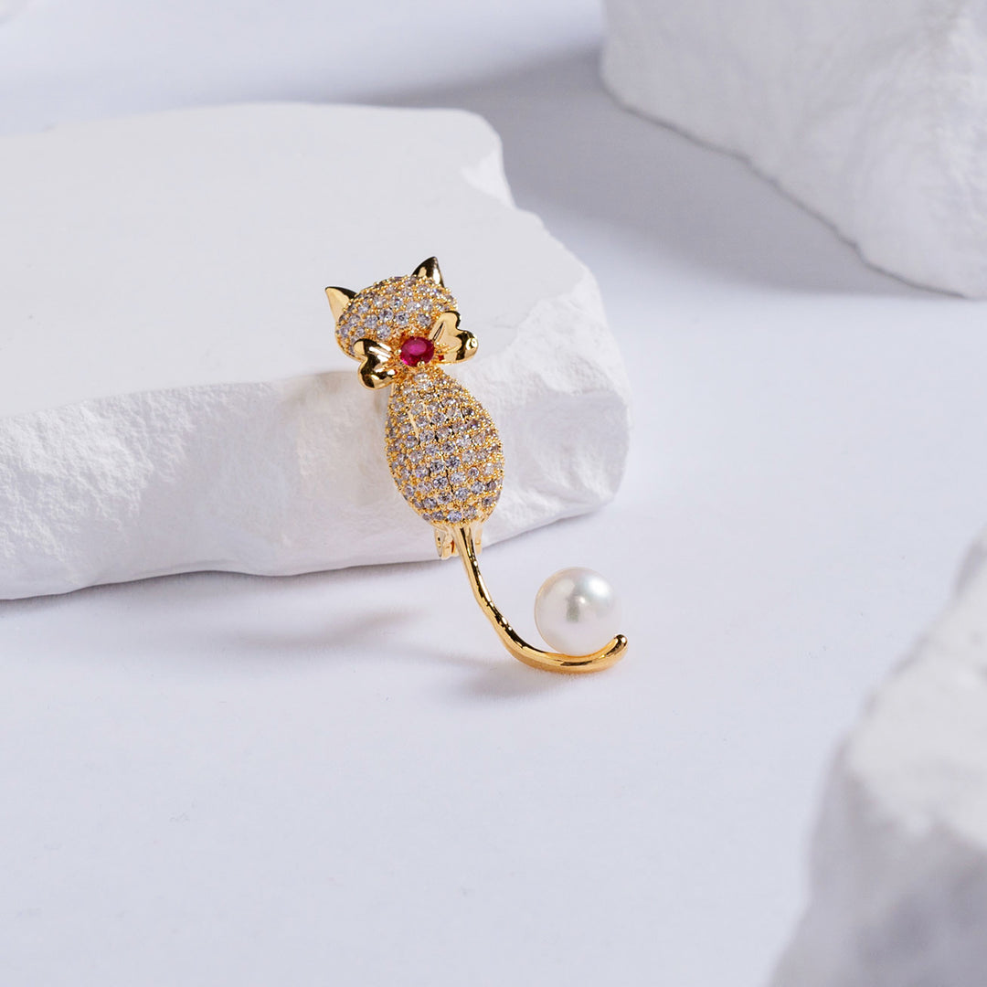 Diese charmante Katzen-Design-Brosche ist das perfekte Accessoire, um jedem Outfit einen Hauch von Verspieltheit und Raffinesse zu verleihen. Die niedliche Katzenform wird durch eine glänzende Perle am Schwanz ergänzt, die einen Hauch von Eleganz und Weiblichkeit hinzufügt. Ob an einem Jackenrevers, Schal oder sogar als Statement-Stück an einem Kleid getragen, diese Brosche zieht garantiert alle Blicke auf sich und zaubert jedem Frauen, die Katzen und Perlen lieben, ein Lächeln ins Gesicht.