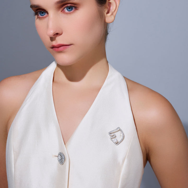 Anmut trifft auf Stärke in Bewegung, diese pferdeinspirierte Brosche fängt den Geist von Freiheit und Eleganz ein. Mit schimmernden Perlen und filigraner Handwerkskunst spiegelt sie die Schönheit der Bewegung und die Haltung ihres Trägers wider.