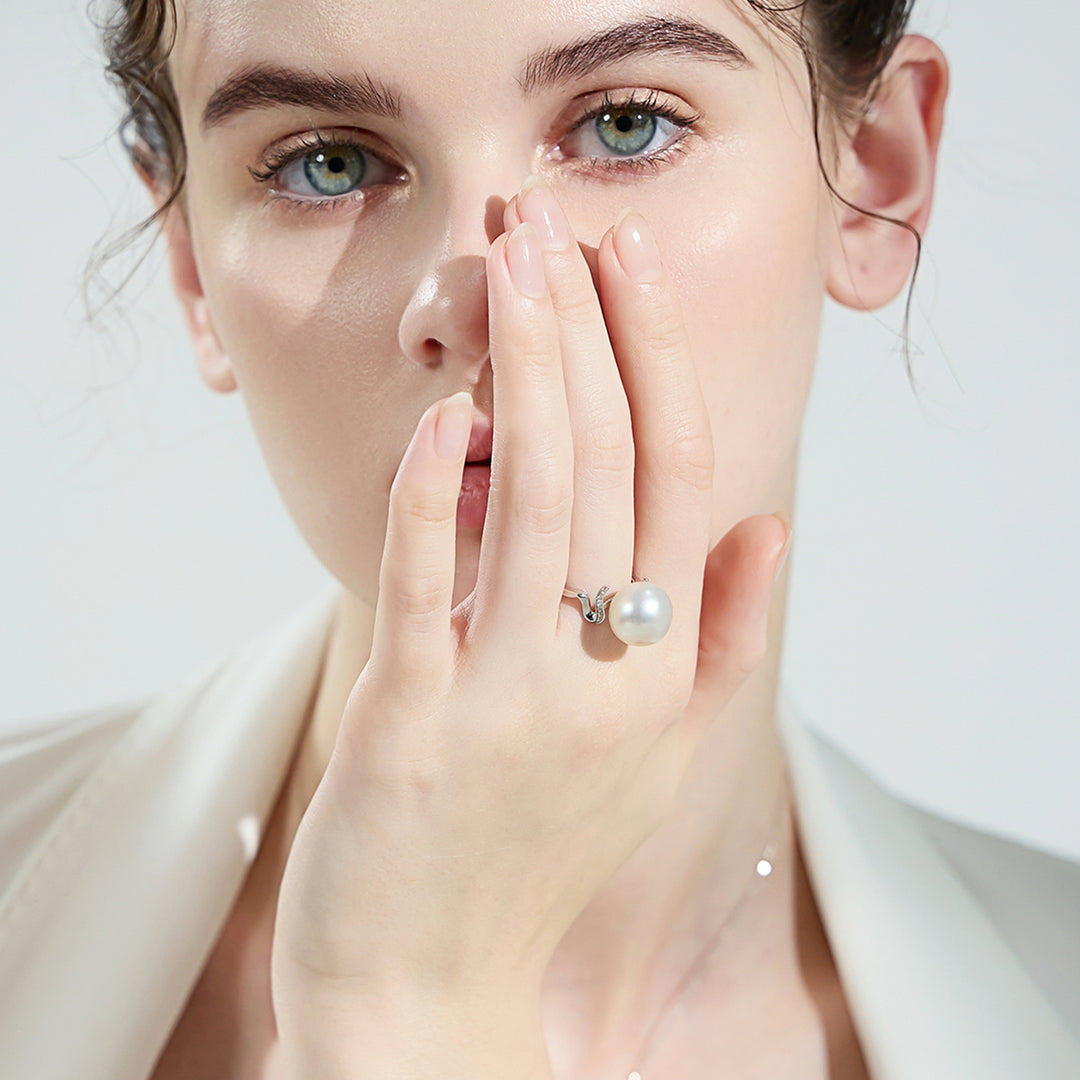 18K Diamond Australian White South Sea Pearl Ring KR00078 - PEARLY LUSTRE
