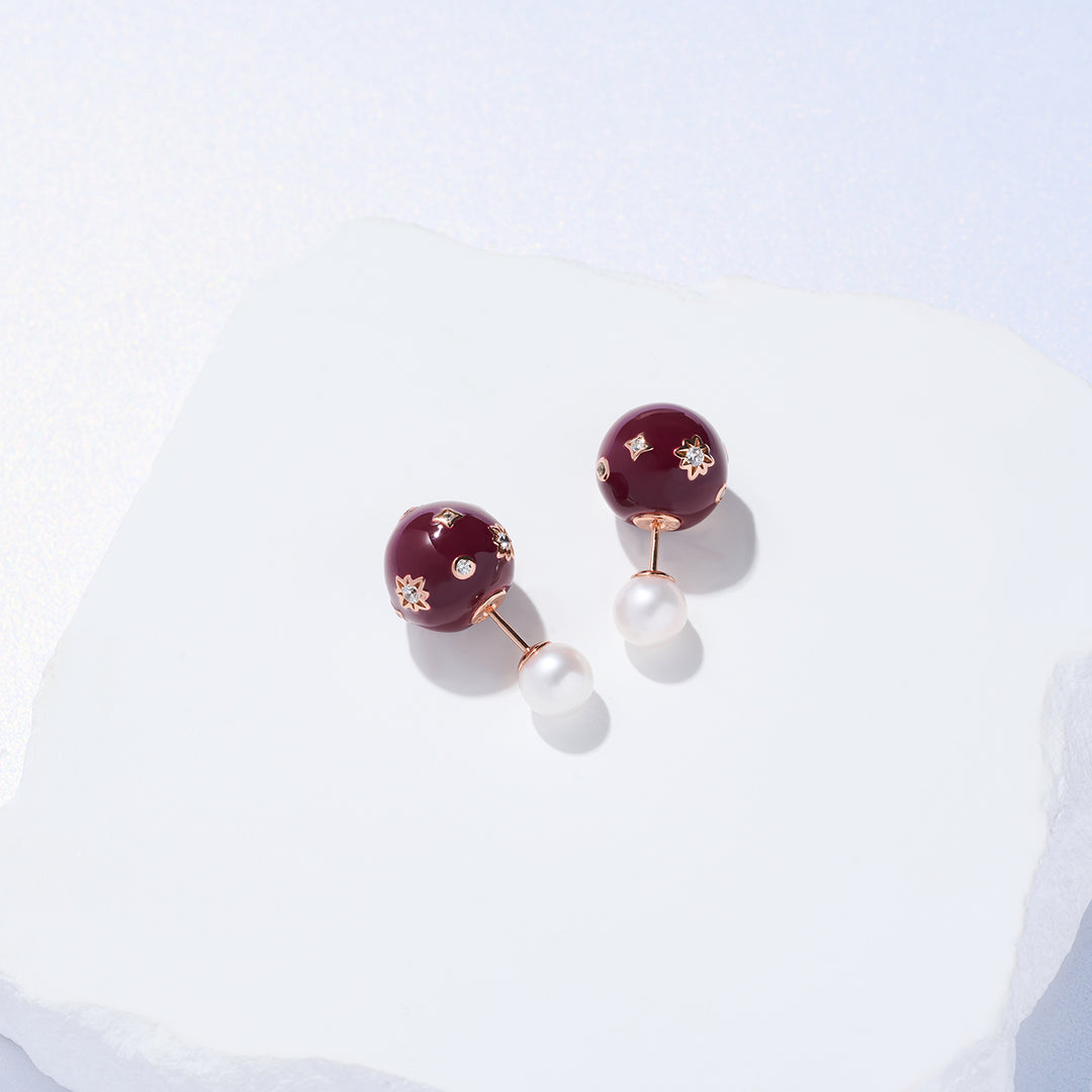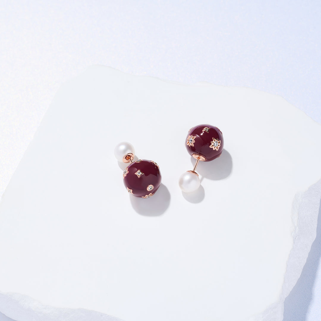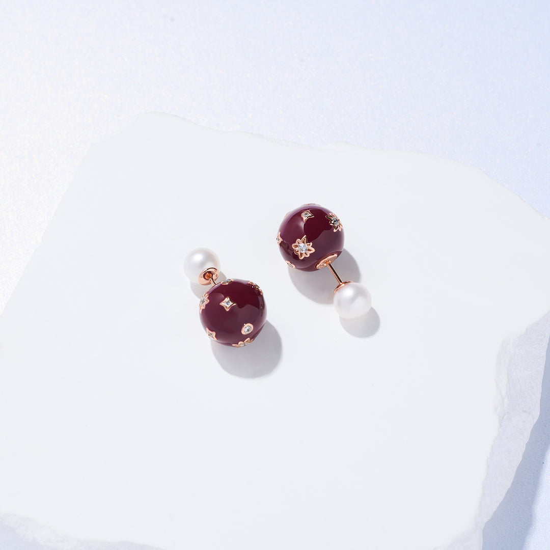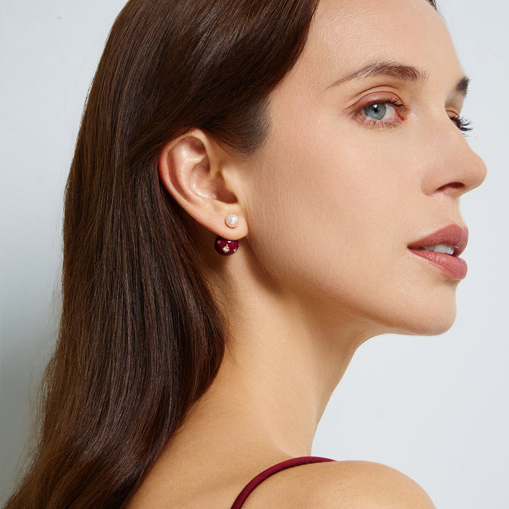 Top Grade Freshwater Pearl Earrings WE00860 | Ancora Red - PEARLY LUSTRE