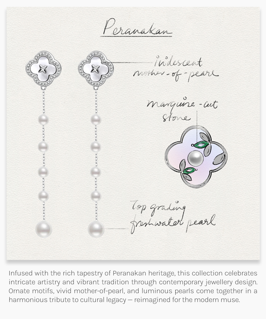 Inspiriert vom Peranakan-Stil Südostasiens verbindet dieses Design kulturelle Eleganz mit moderner Raffinesse.