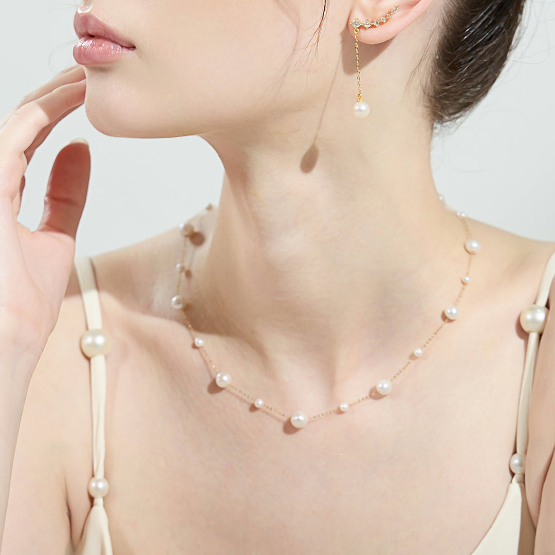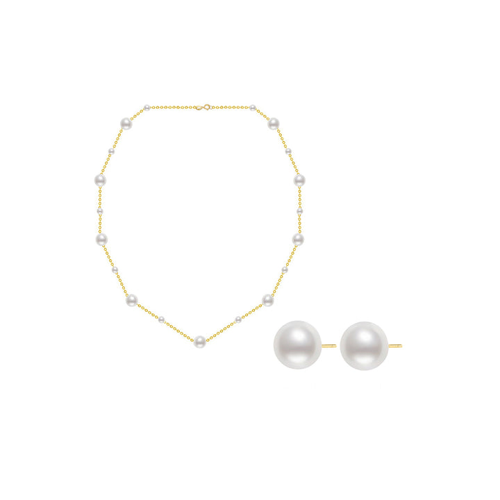 18K Solid Gold Freshwater Pearl Necklace & Earrings Set KS00017 - PEARLY LUSTRE