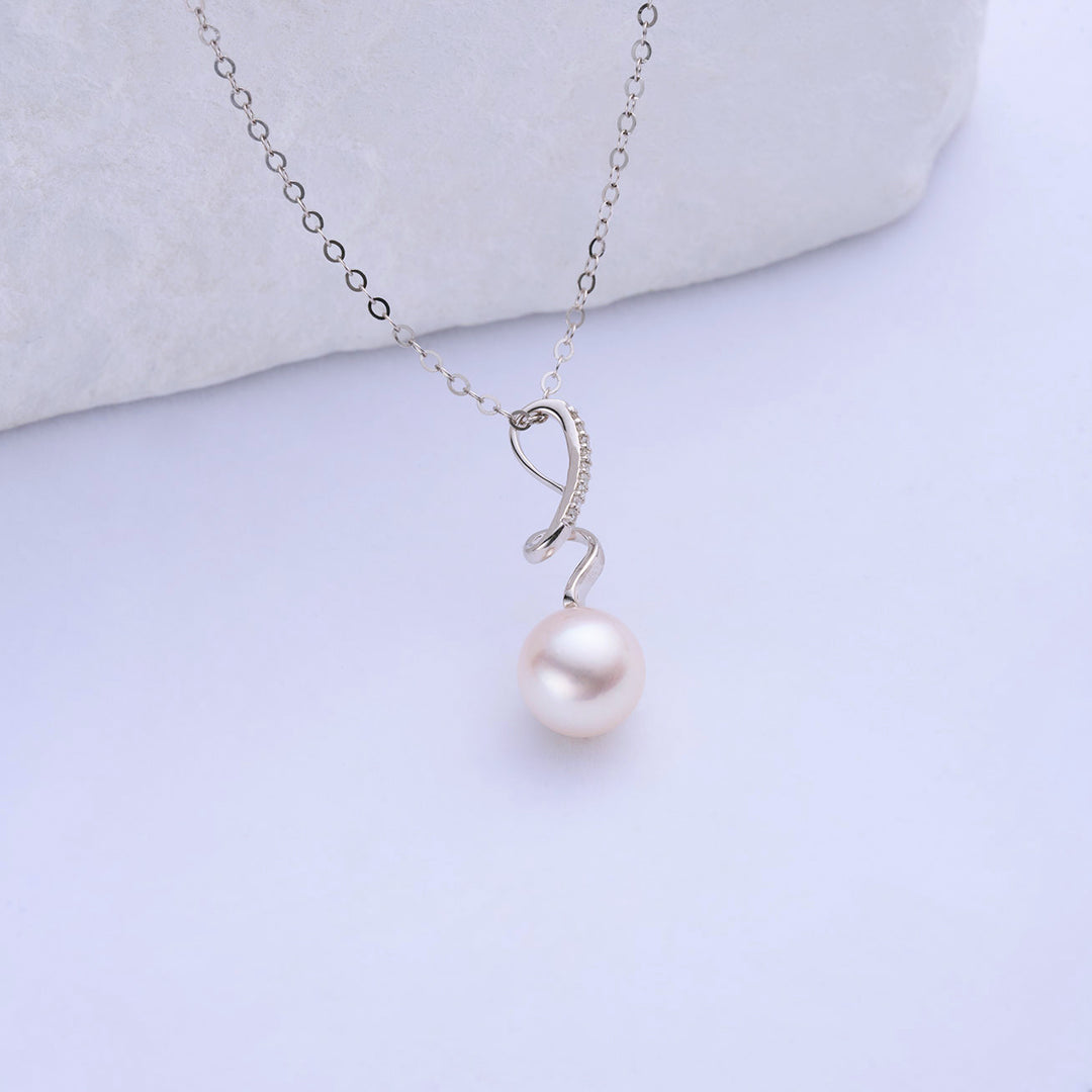 18K Solid Gold Diamond Hanadama Akoya Pearl Necklace KN00277 | S Collection - PEARLY LUSTRE