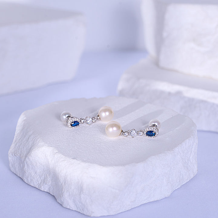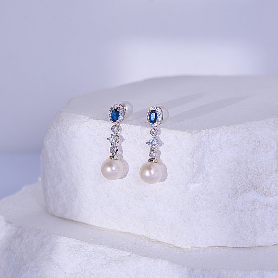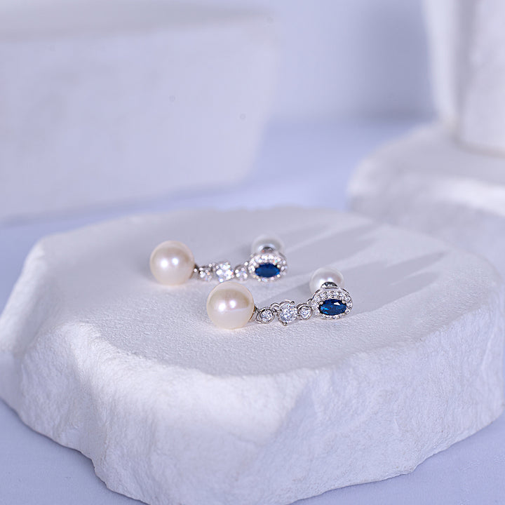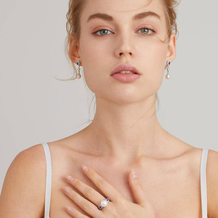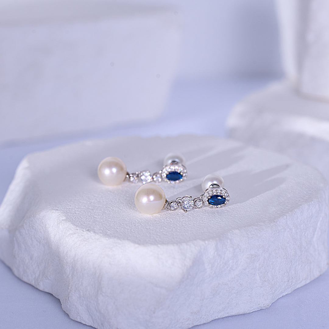 Midnight Ocean celebrates the divine union of these two realms. Peals, treasures of the ocean, evoke the mysterious allure of underwater realms, while ethereal blue cubic zirconia mirrors celestial brilliance. Embrace the captivating beauty where the sky meets the ocean, forever captured these exquisite gems.