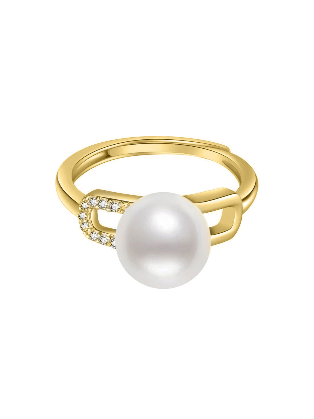 This is a pearl ring for the adventurous woman, the one setting out on a journey, celebrating at a special dinner, exploring the world ahead of her. A freshwater pearl center in a stunning oval design, cubic zirconia on one side, sterling silver gold plated on the other for some extra glitz!