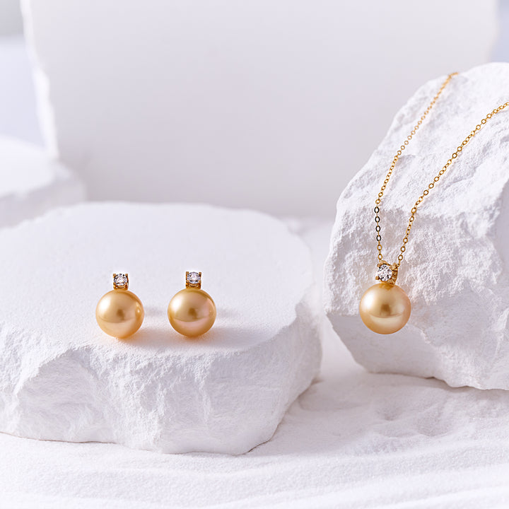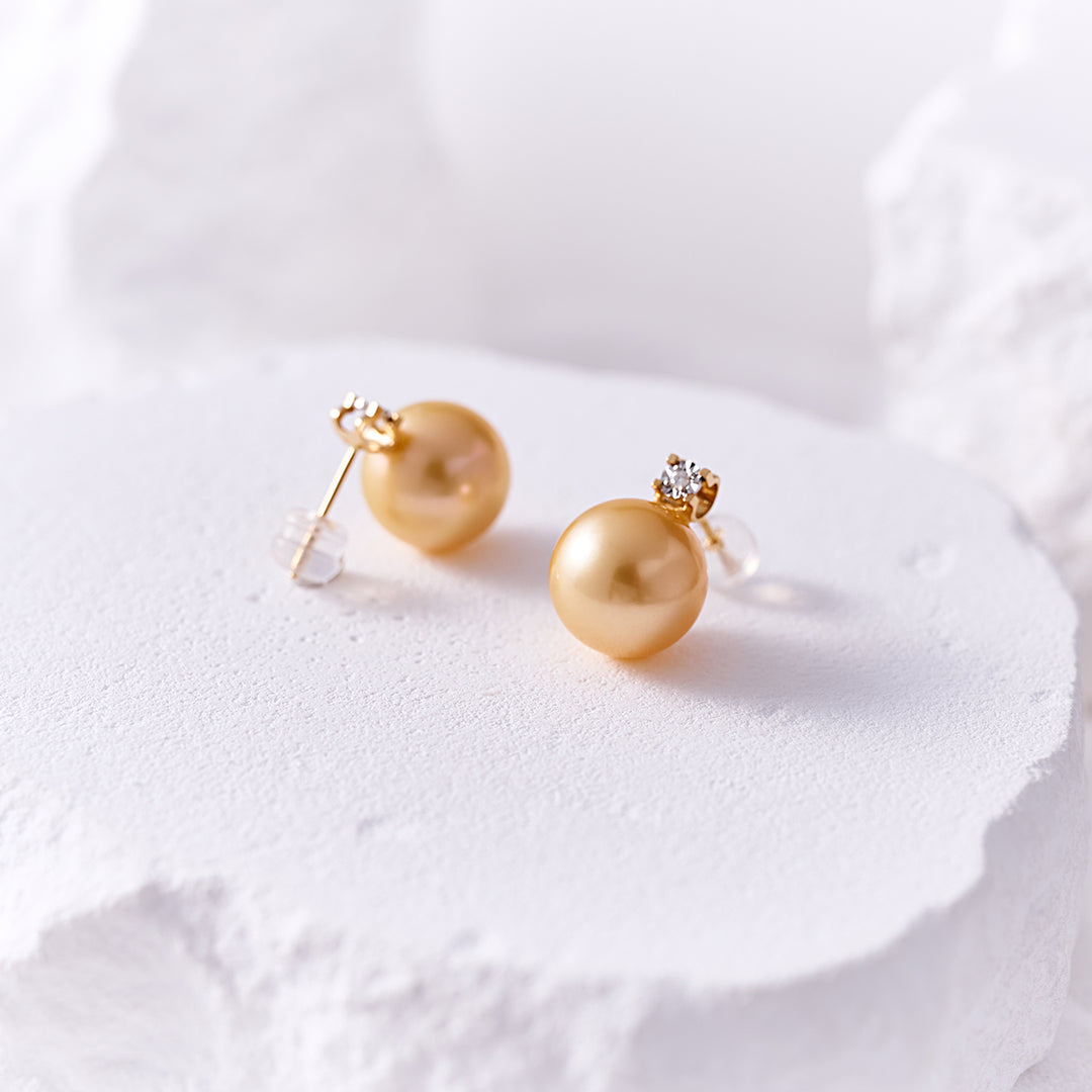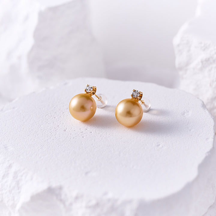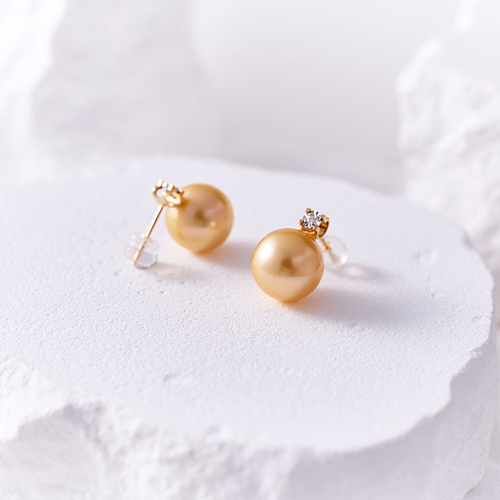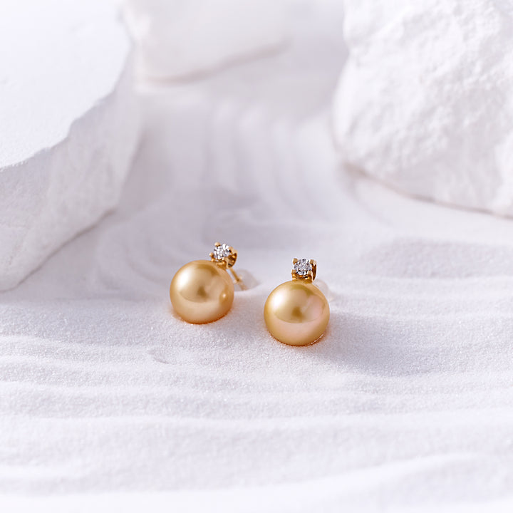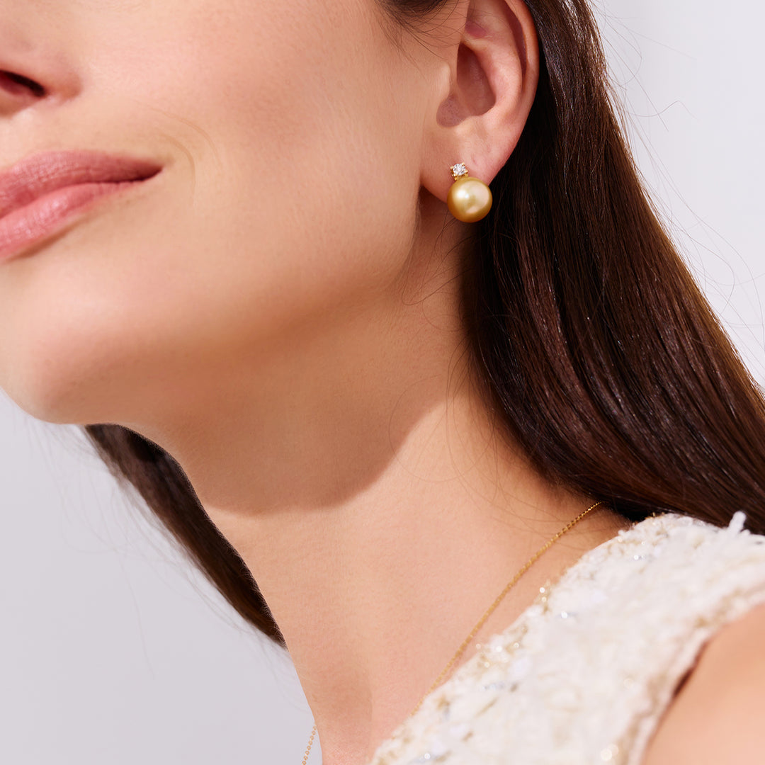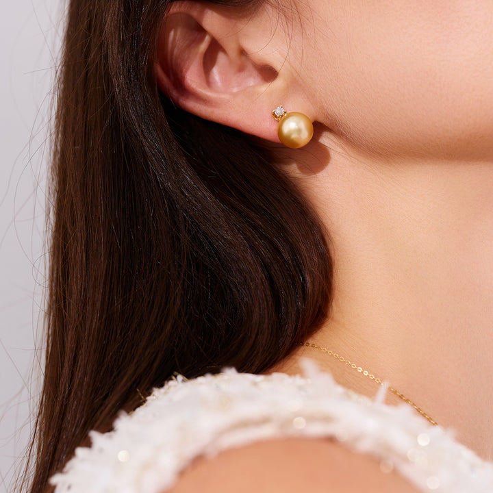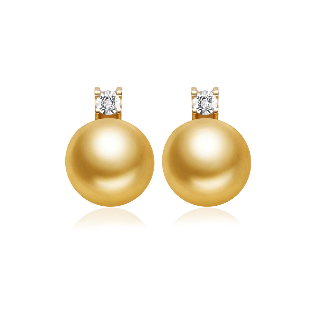 18K Gold Diamond South Sea Golden Pearl Earring KE00278 - PEARLY LUSTRE